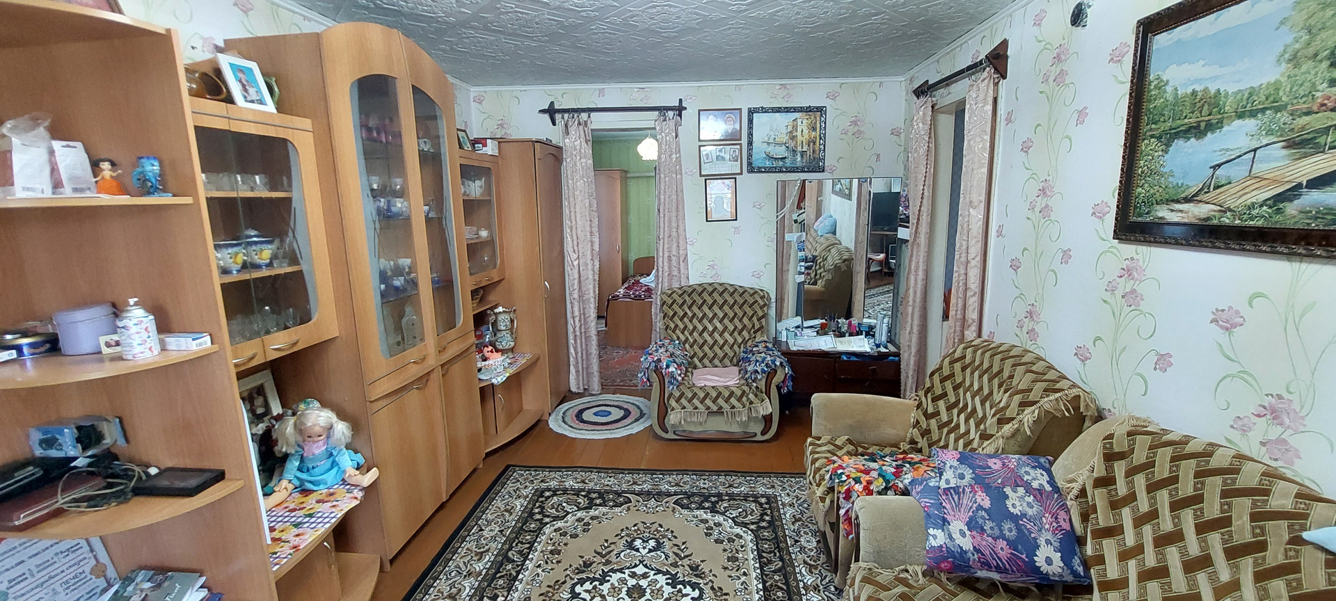 Продается квартира площадью 45,1 кв.м. на земельном  участке 8 соток, из построек баня, летняя кухня, гараж. Квартира состоит из трёх комнат, отопление печное водяное, санузел в доме, окна пластик. Или обмен на 2 комнатную квартиру, рассмотрим все варианты.