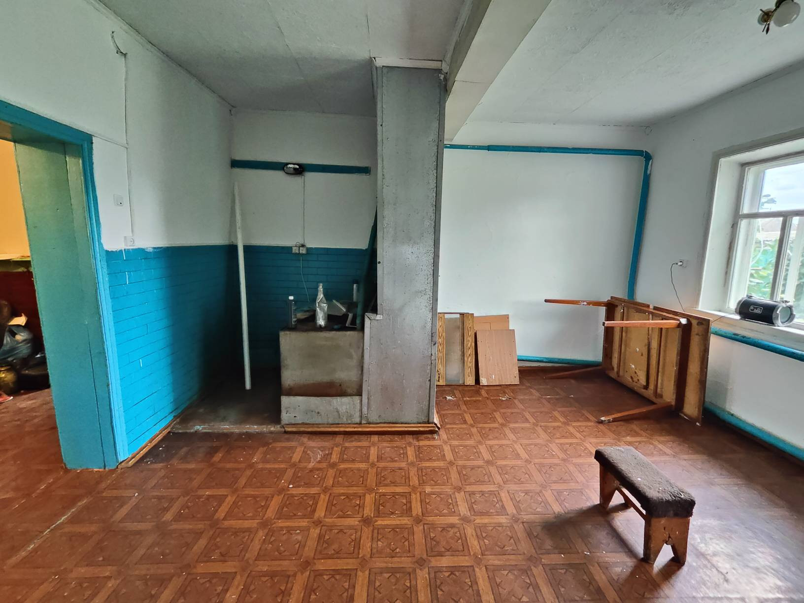 Расположение отличное, рядом Продуктовый магазин "Авоська", Почтовое отделение и Автобусная остановка.(на последнем фото видно)