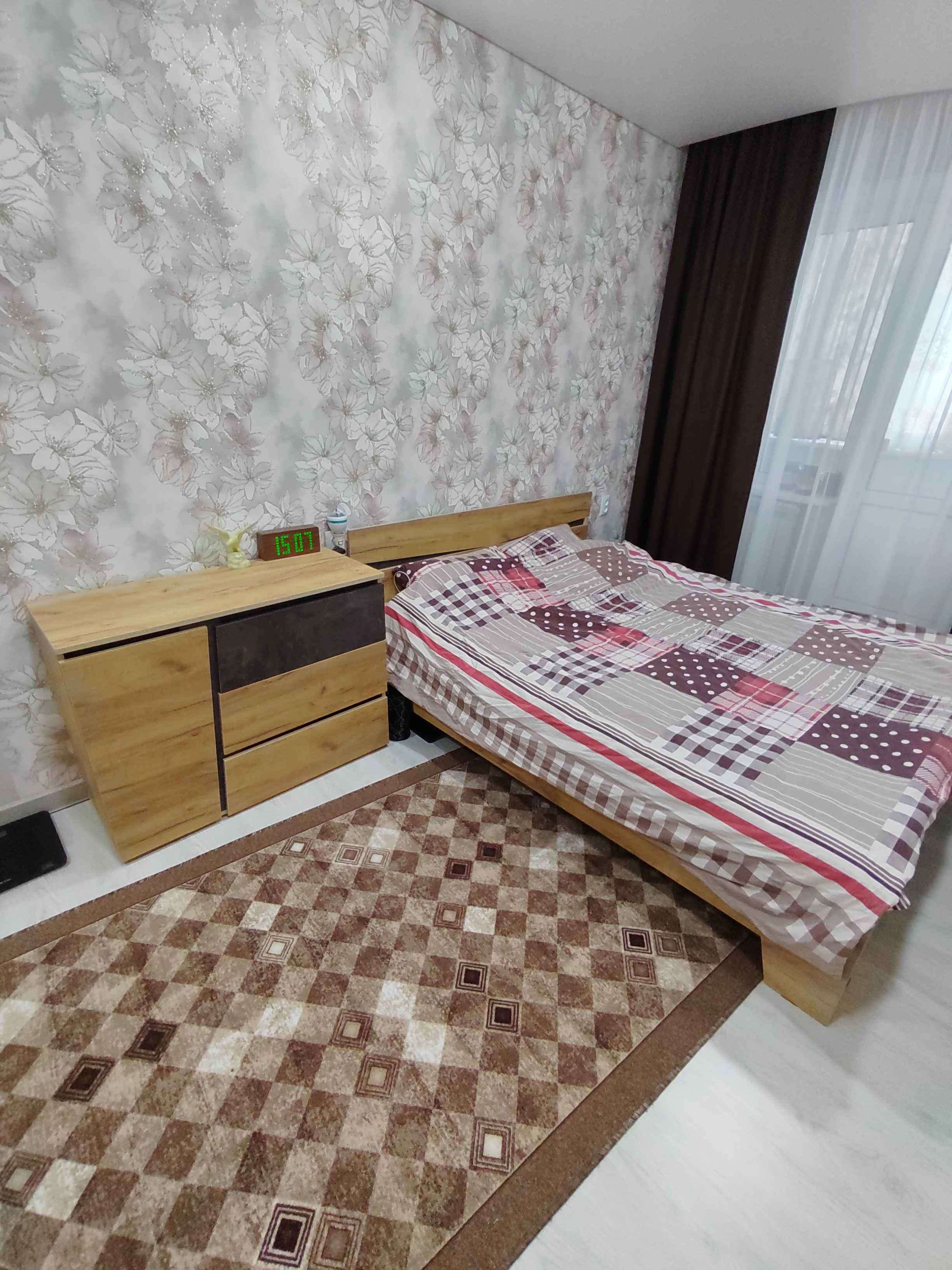 Новым хозяевам остается кухня, холодильник, так же в спальне новая кровать и комод из одной серии.