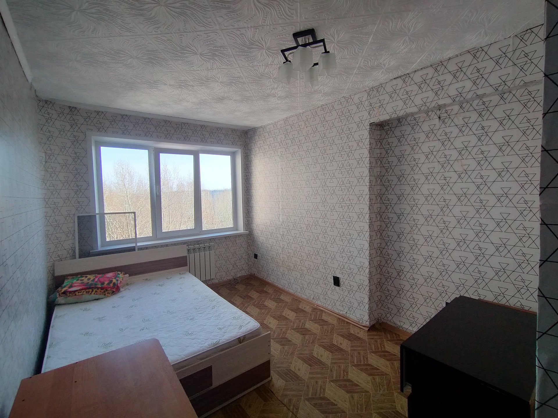 В квартире остаётся новая кровать, шкаф.
