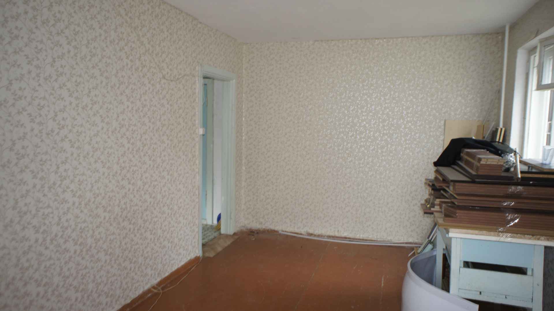 Квартира без ремонта. В тамбуре на две квартиры. Балкона нет. Одно пластиковое окно, новая душевая кабина и унитаз