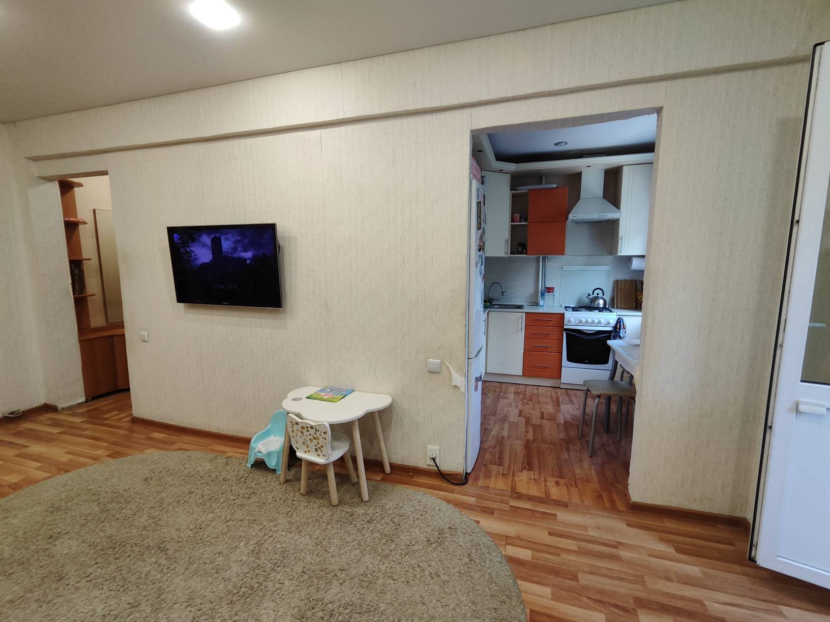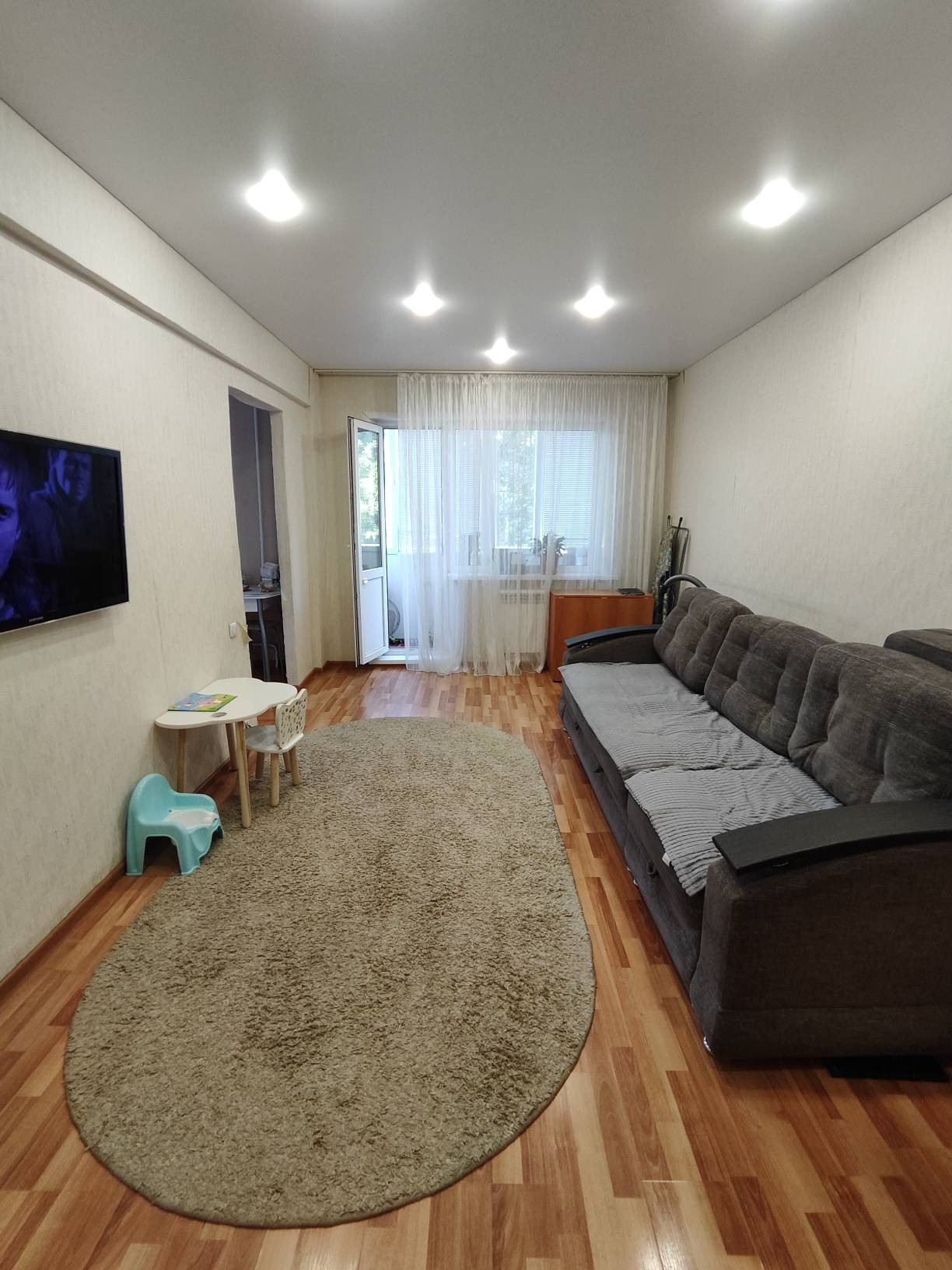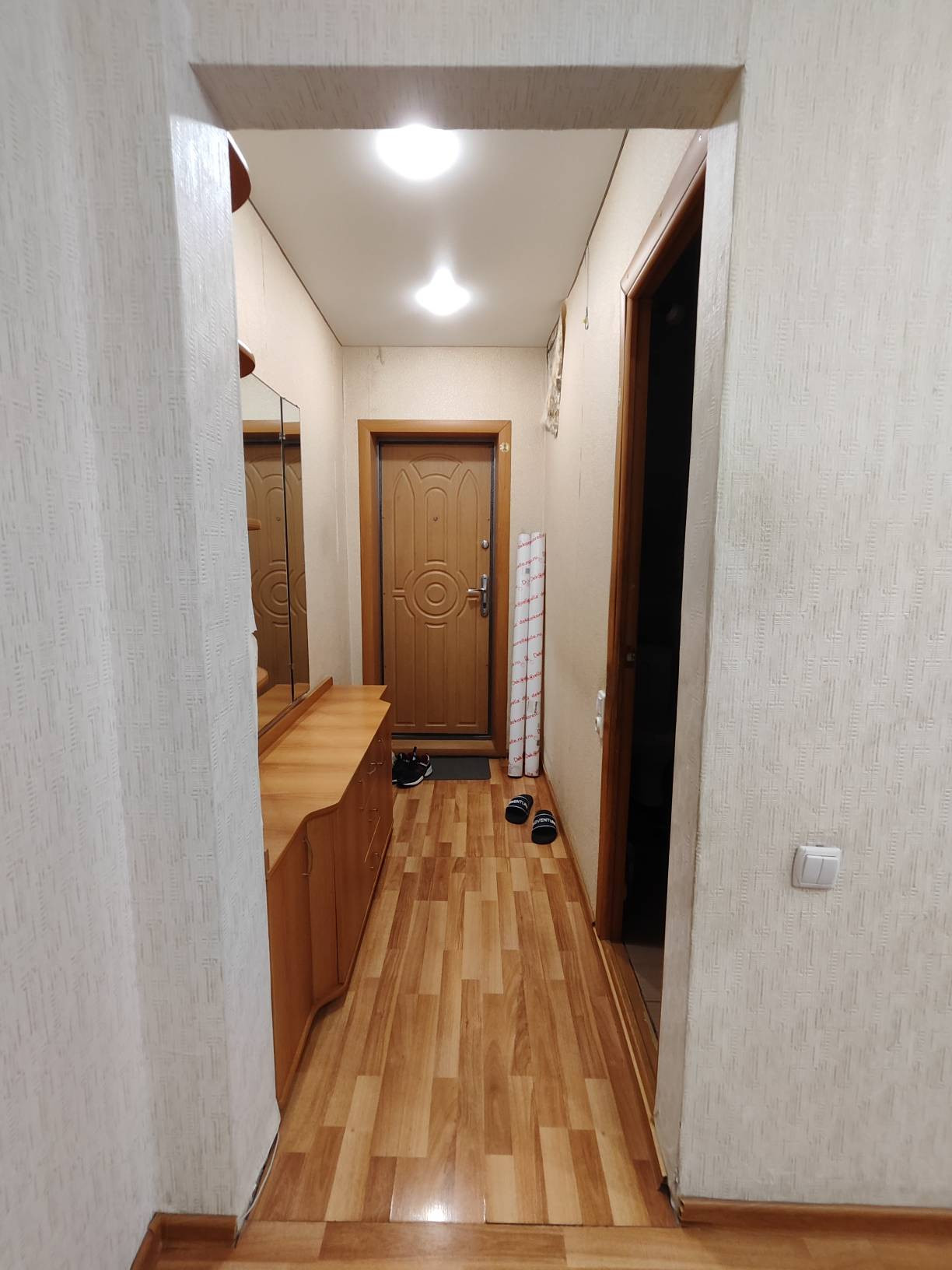 Хорошее состояние, полы - стяжка и ламинат, окна пластик, балкон пластик.