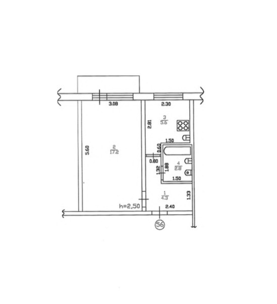 Общая площадь 30.5 м2