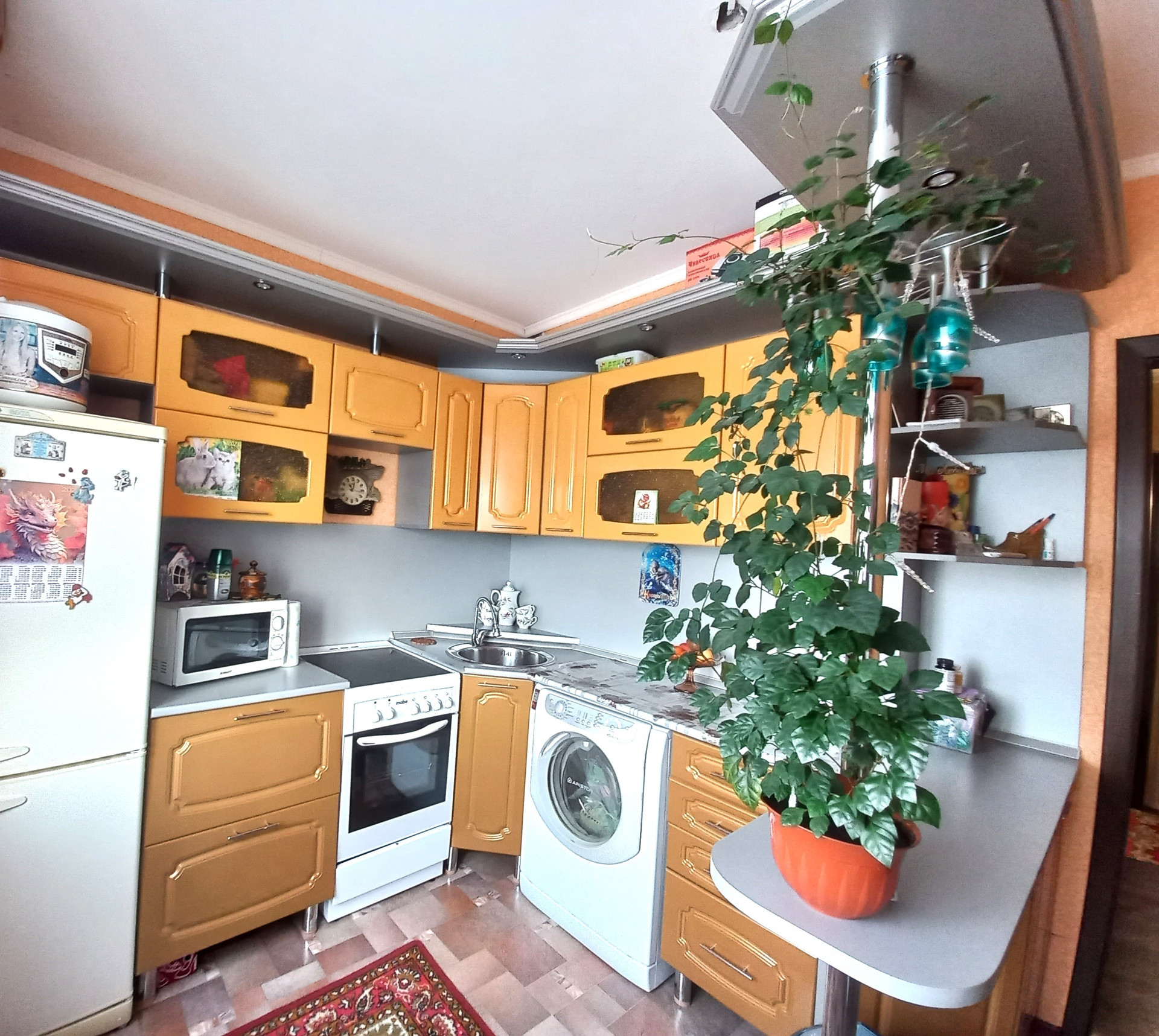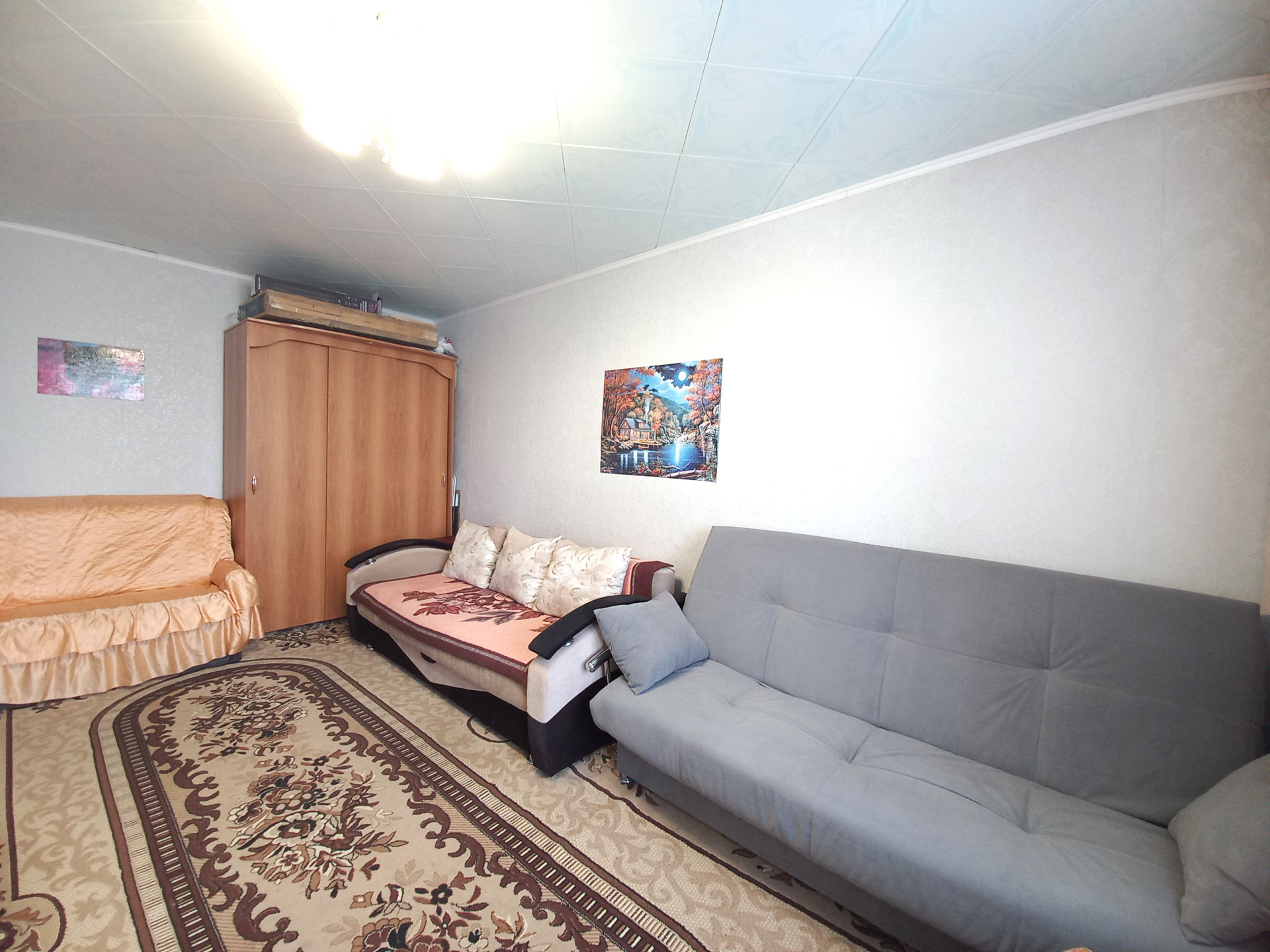 Новому хозяину остается кухонный гарнитур, шкаф и диван.