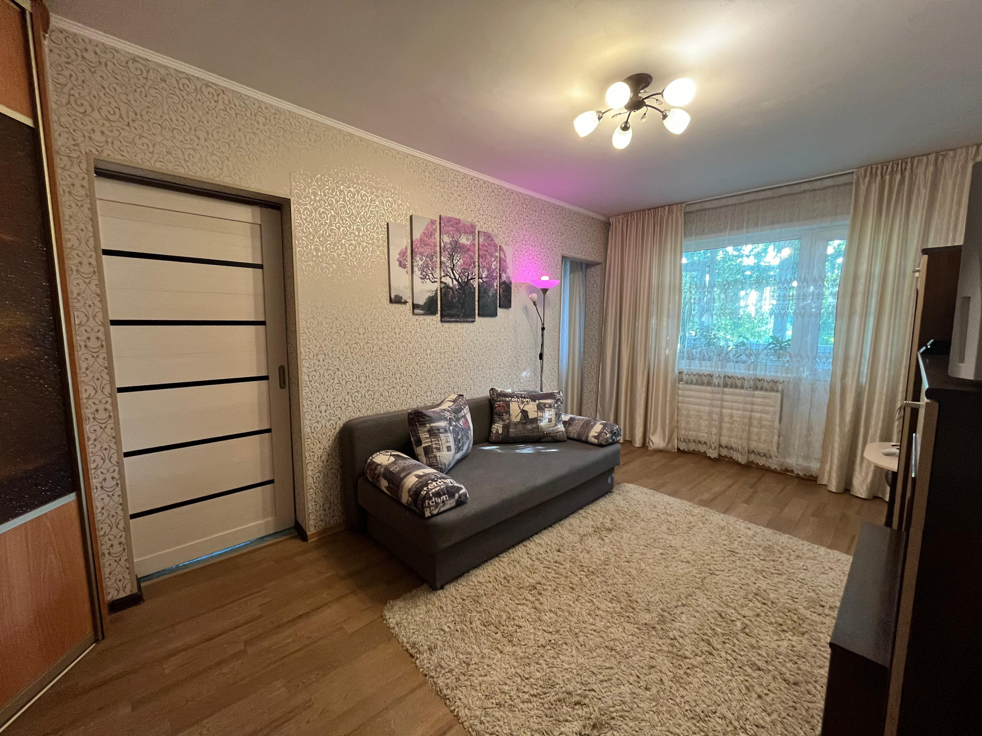Продаётся четырёхкомнатная квартира с ремонтом, сделан капитальный ремонт,  балкон и окна пластиковые, санузел совмещенный в кафеле, входная и межкомнатные двери замены, полы убраны.