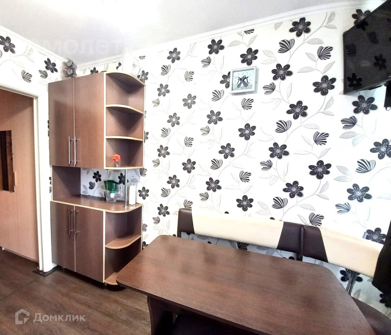 Новому хозяину остается кухонный гарнитур, электроплита, кухонный уголок, шкафы в коридоре и в комнате, кондиционер.