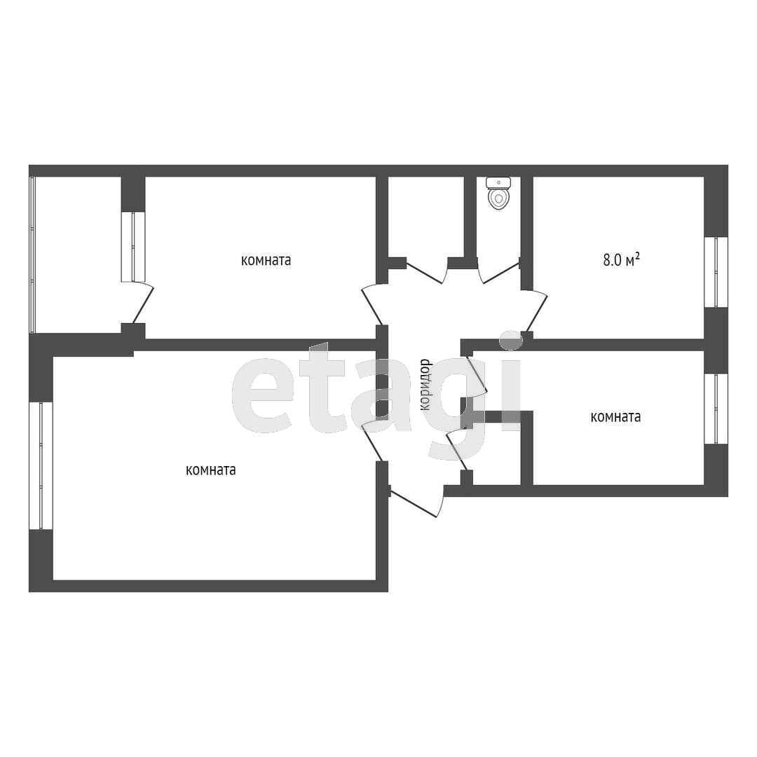 3-комнатная квартира, 63.9 м2, этаж 1 / 2, на продажу в Заводоуковске, улица Декабристов, 7