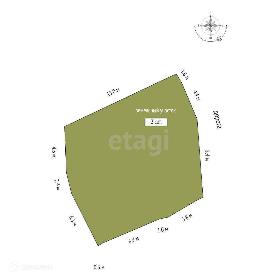Площадь участка 2 сот.