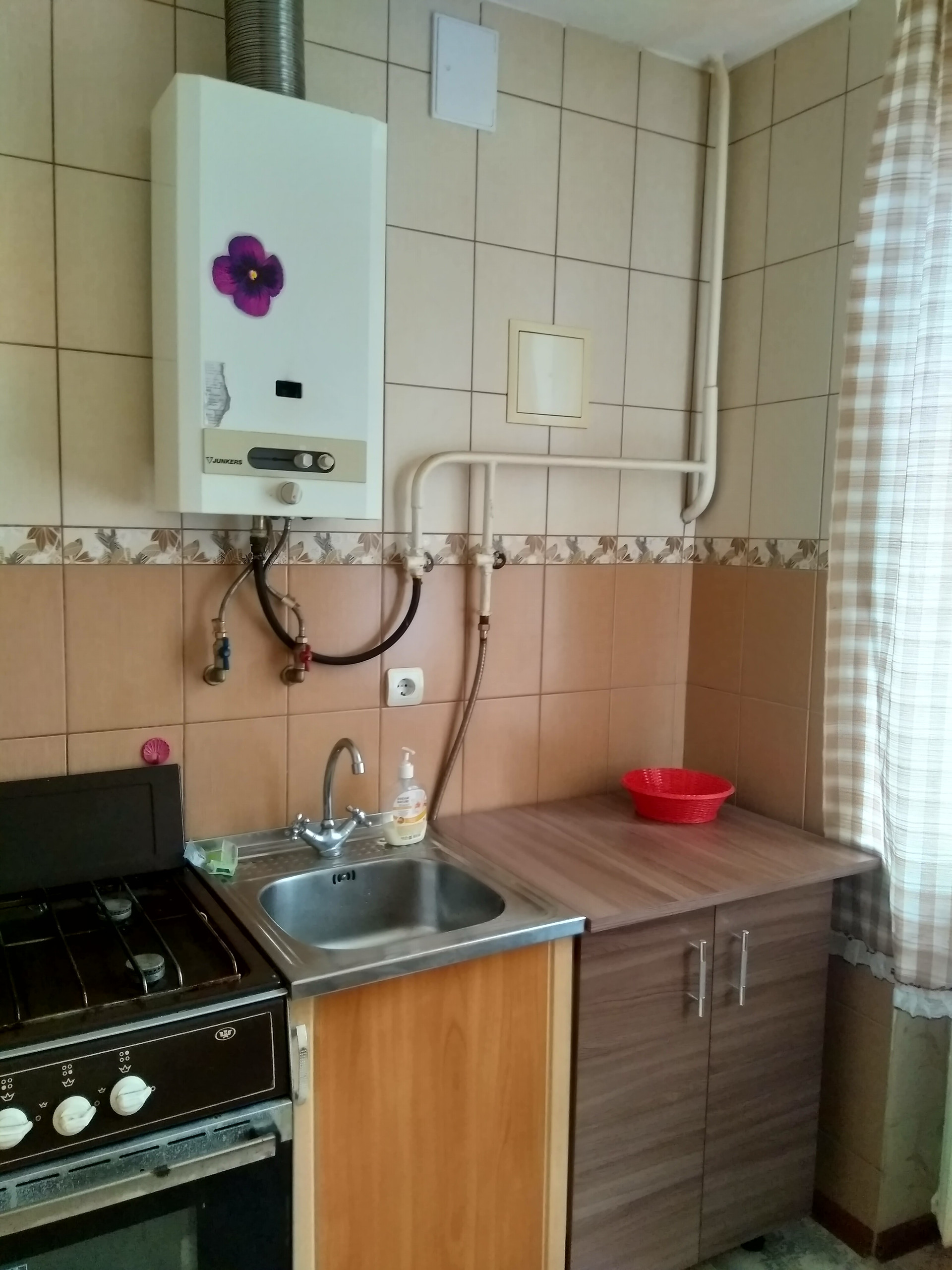 Продам 1 комнатную квартиру в жилом состоянии, ванная в кафеле,окна выходят во двор. Центр города, все рядом магазины,школы,садики, больницы.