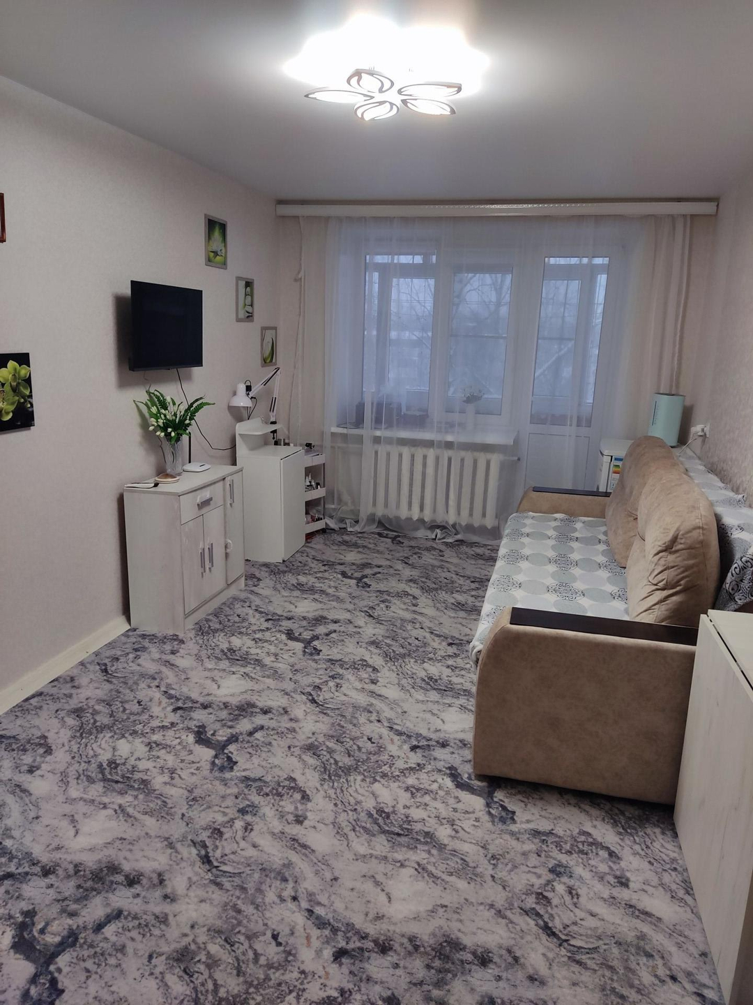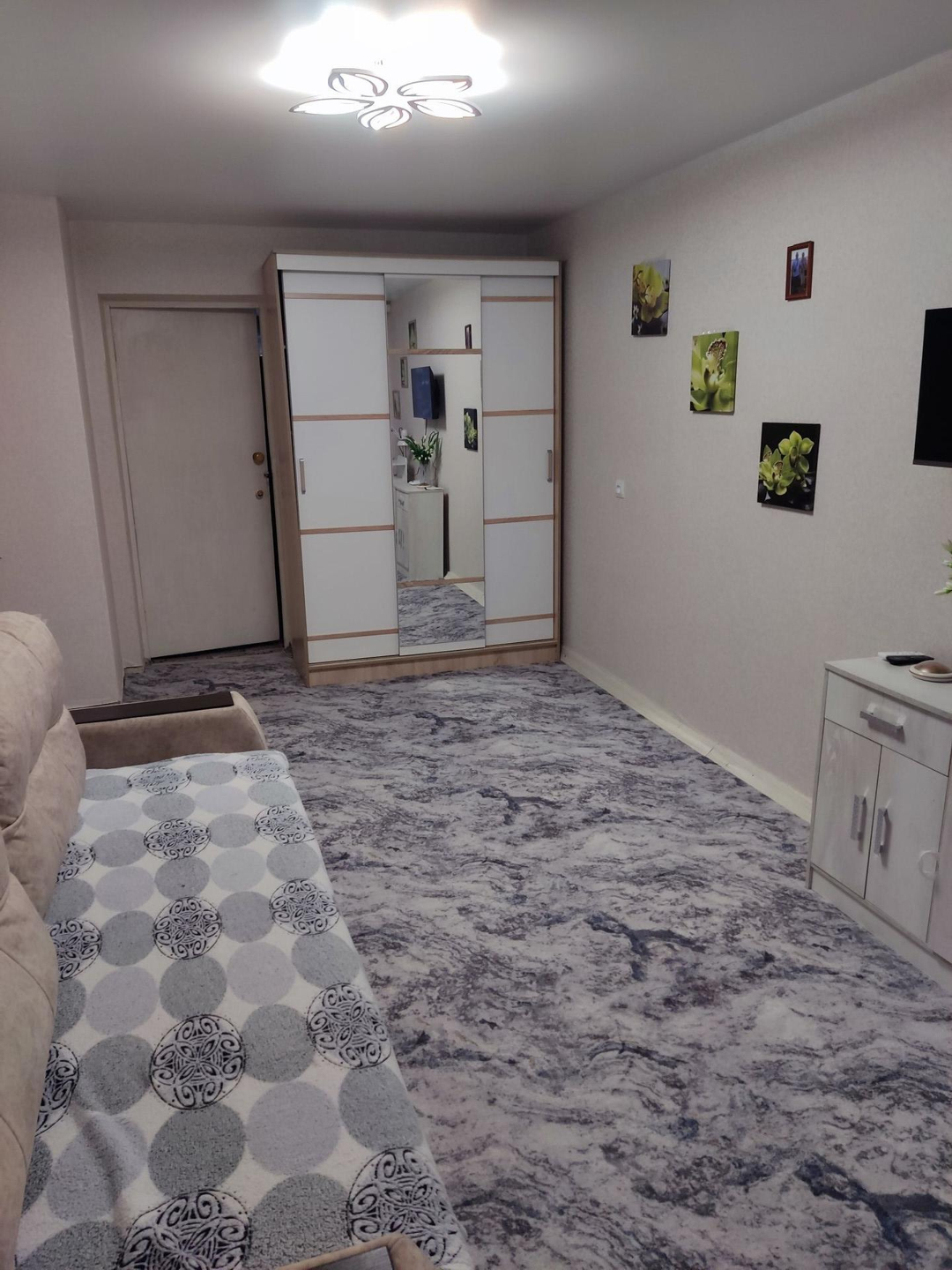 Окна ПВХ, натяжные потолки, балкон застеклён, комнаты на разные стороны, полы ковролин, сантехника поменяла, счётчики на газ и воду установлены, домофон. Подъезд и соседи приличные. Квартира в хорошем состоянии.