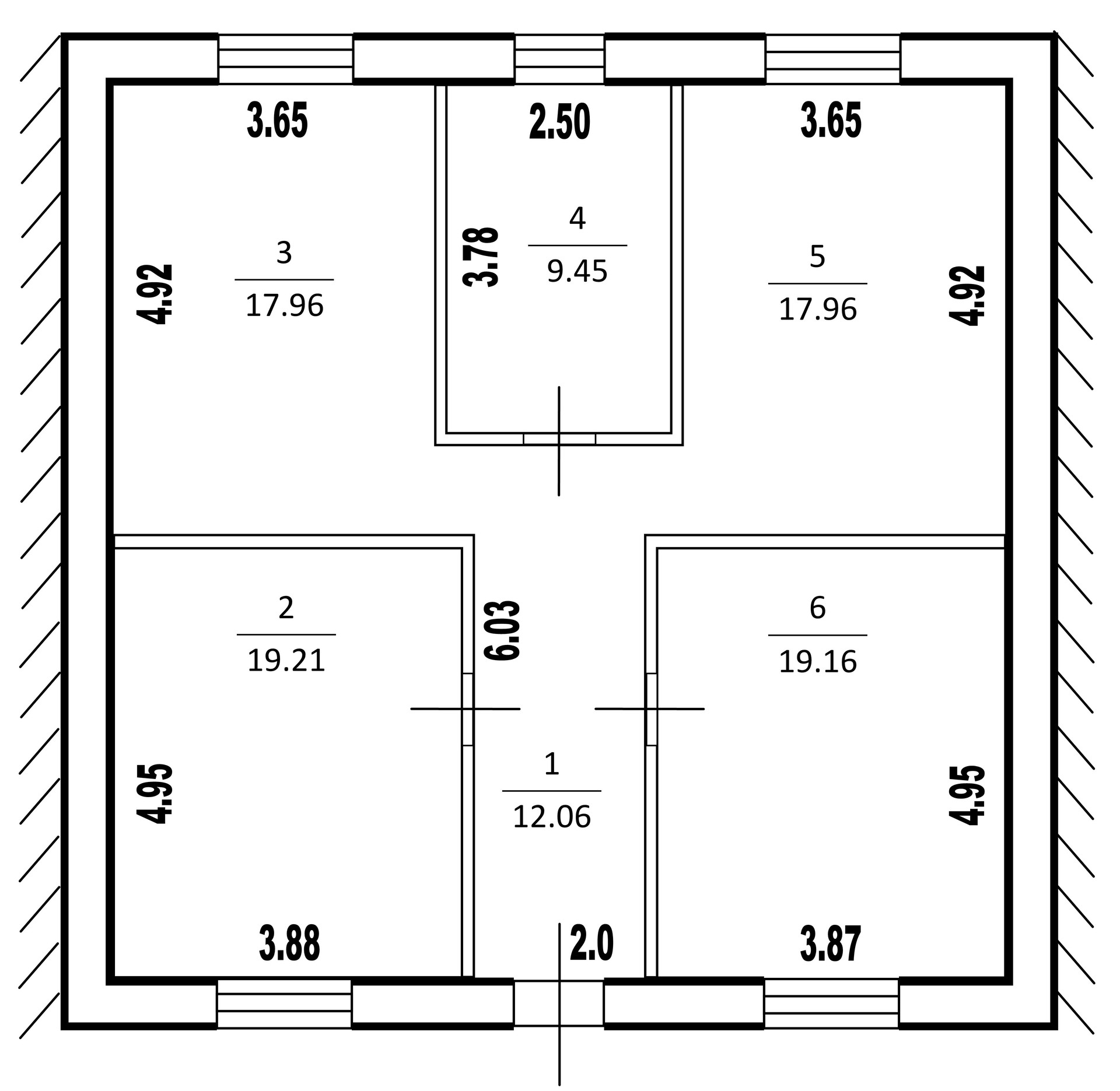 Внутреннее пространство дома оптимальным образом разделено на 4 изолированные комнаты в любой их которых коммуникации позволяют Вам  разместить столовую группу.  + Большая прихожая и большой санузел. Высокие 3-х метровые потолки.