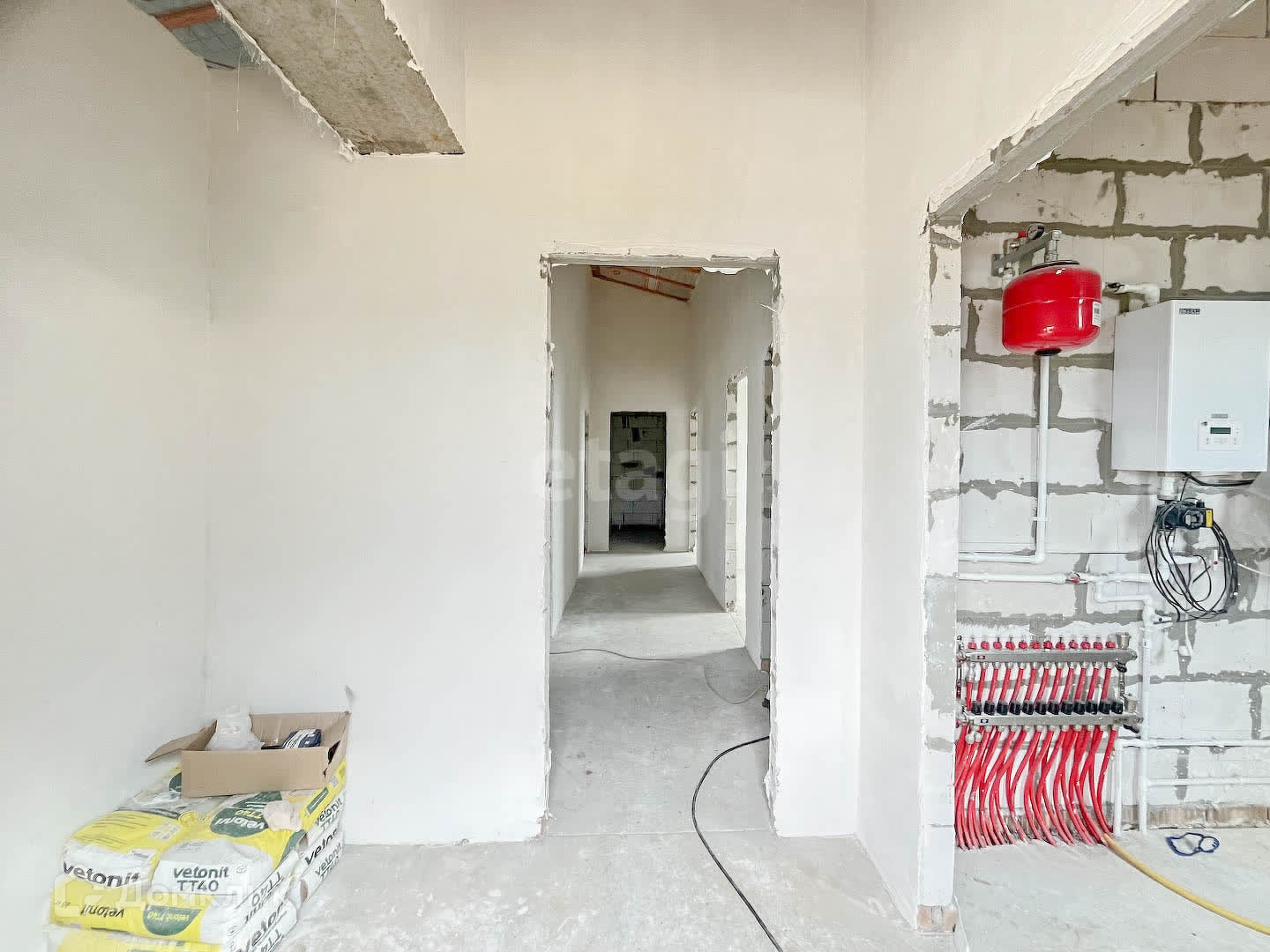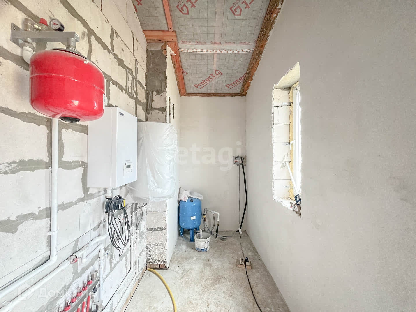 Дом построен из газоблока 400 мм и оштукатурен. По периметру ограждение из профлиста с раздвижными воротами. Фундамент - монолитная плита. Участок ровной прямоугольной формы.