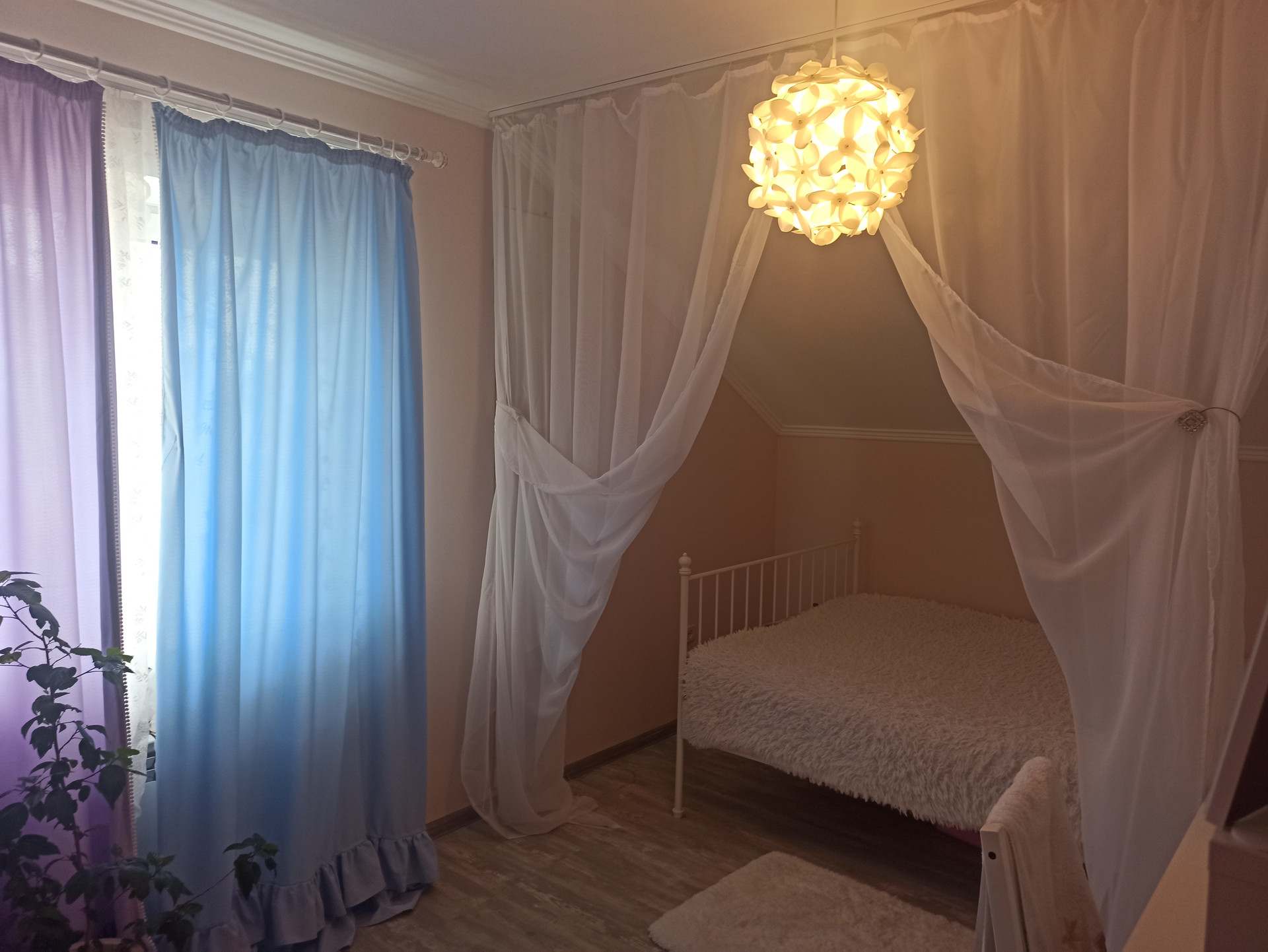 На первом этаже просторная кухня, зал, 2 спальни, санузел,