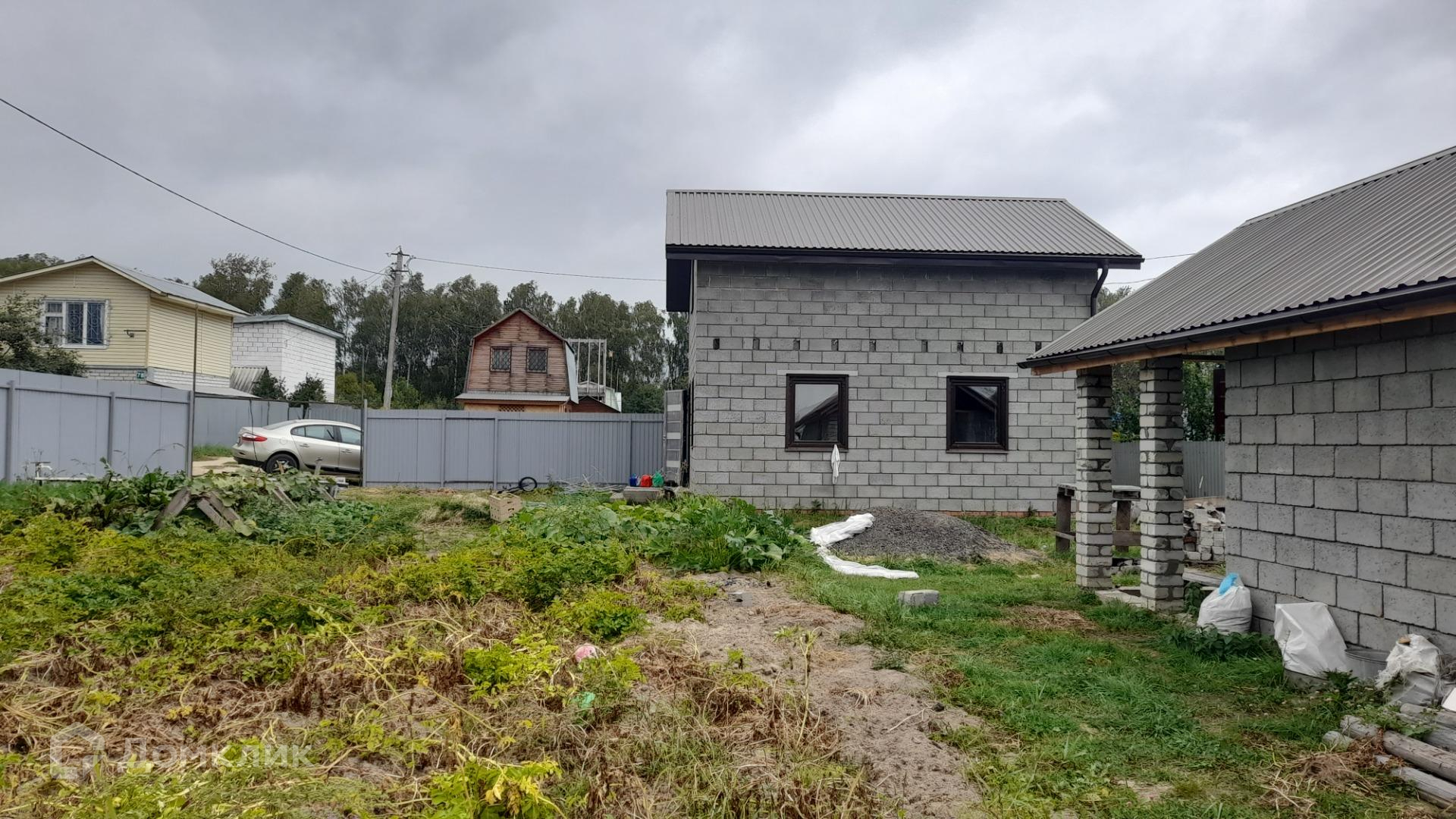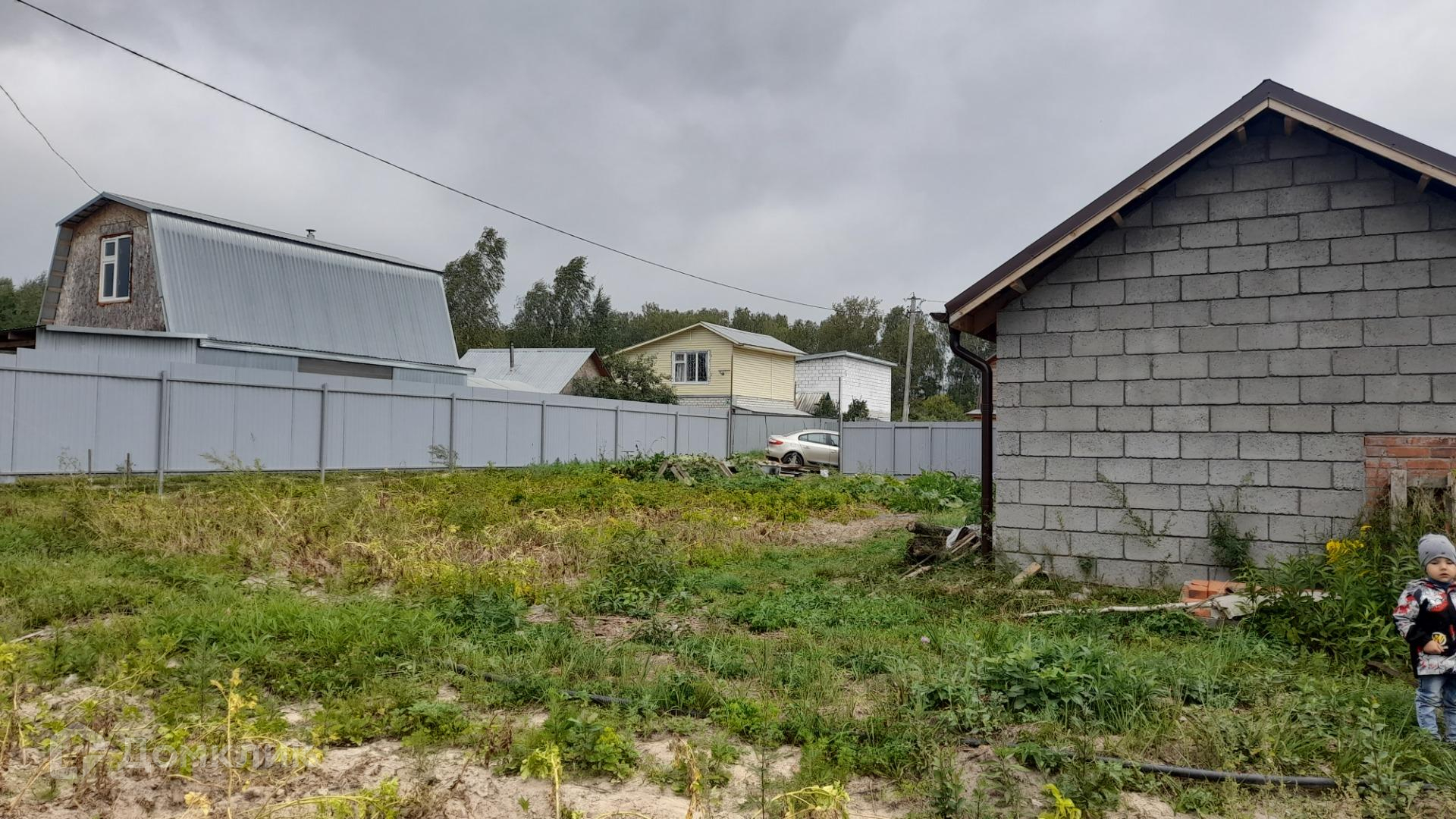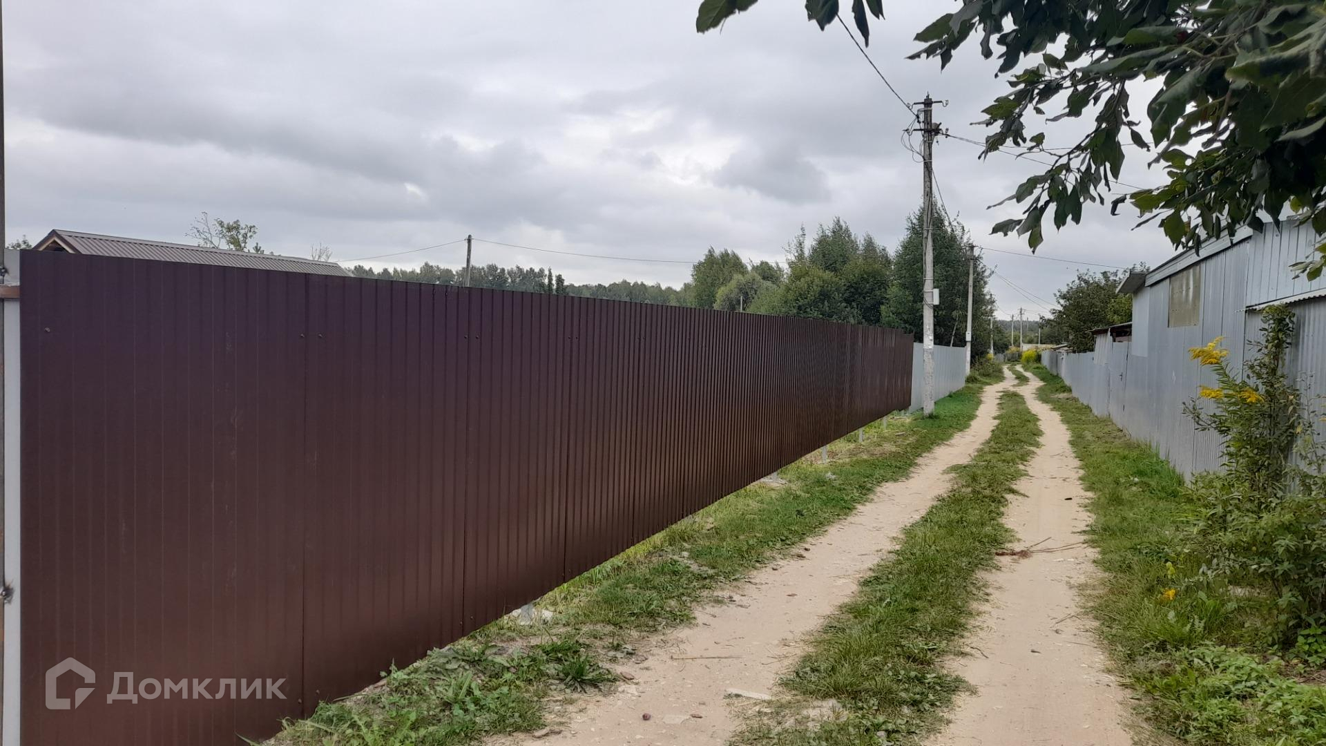 Участок полностью огорожен забором из профнастила, есть ворота для въезда машины.