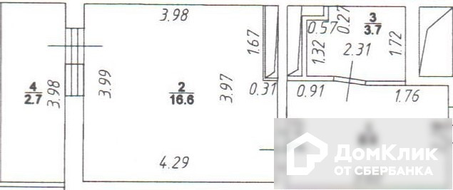 Жилая площадь 16.6 м2