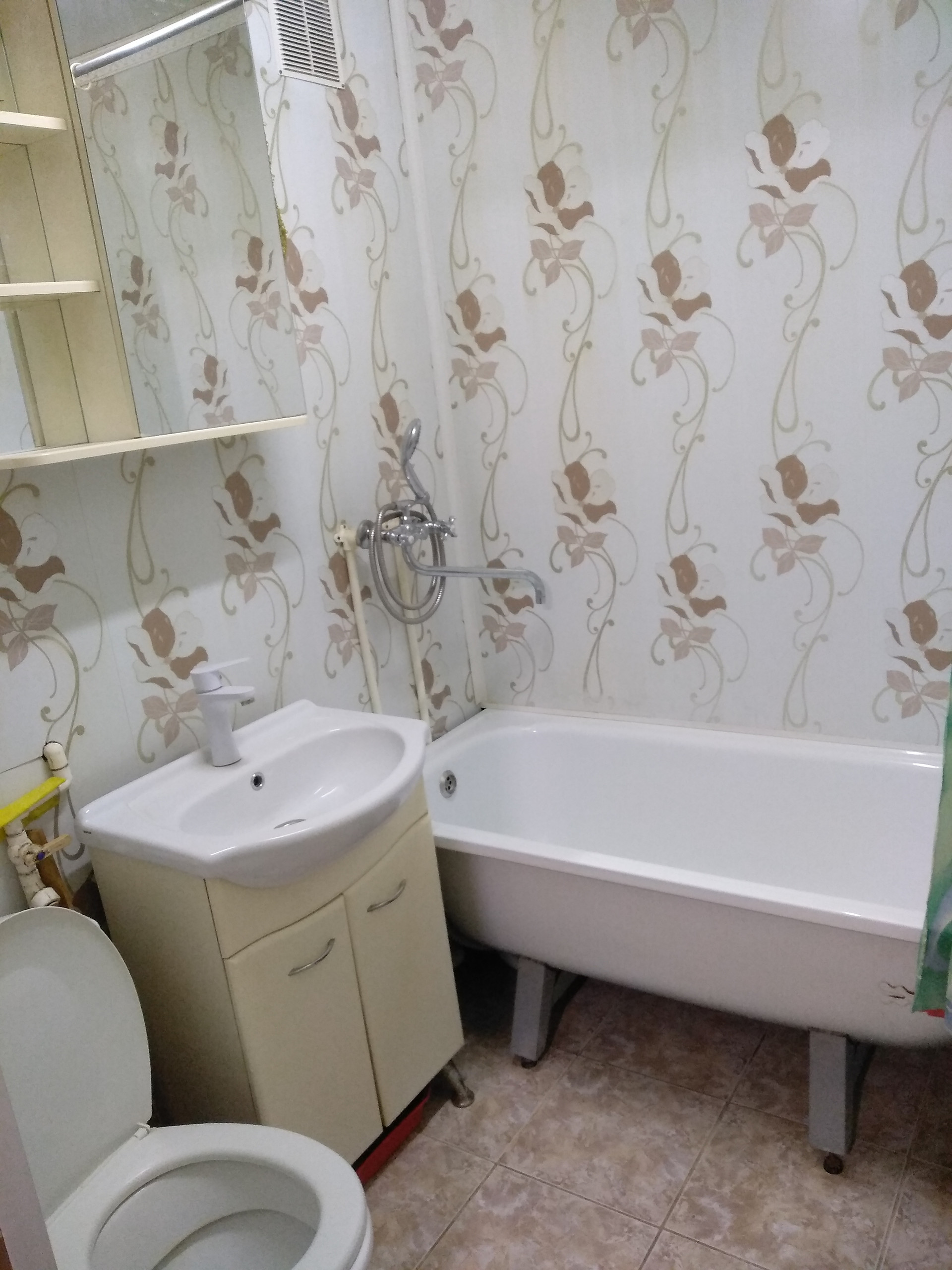 Санузел и ванная совмещены, обложены панелью.