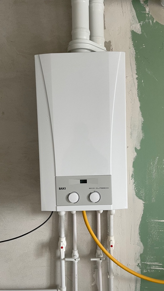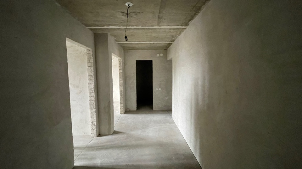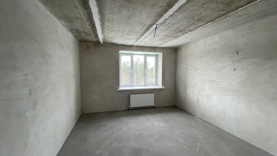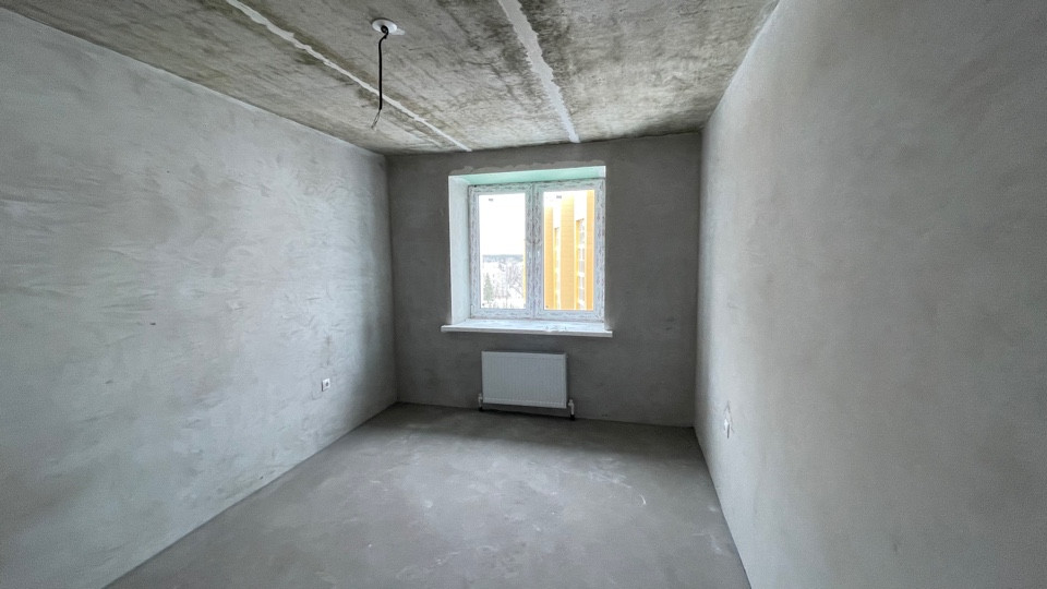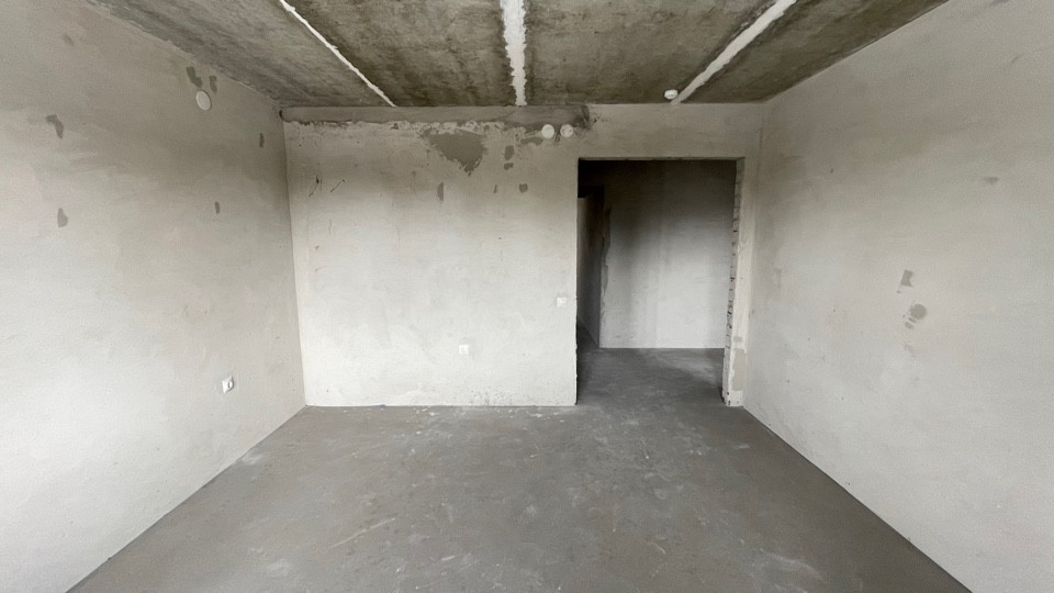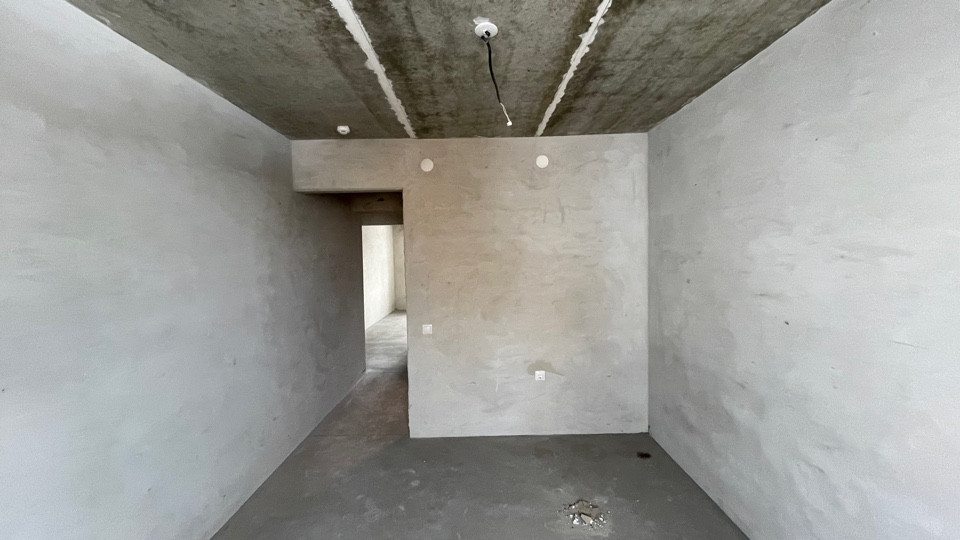 Пол ровный полусухая стяжка, стены отштукатурены, отопление и горча вода от котла "BAXI", радиаторы отопления установлены, розетки и включатели имеются.