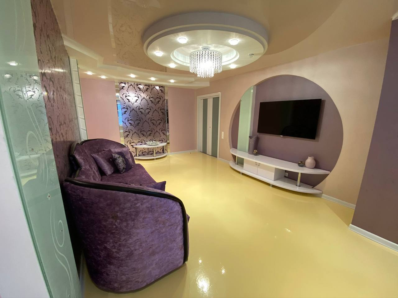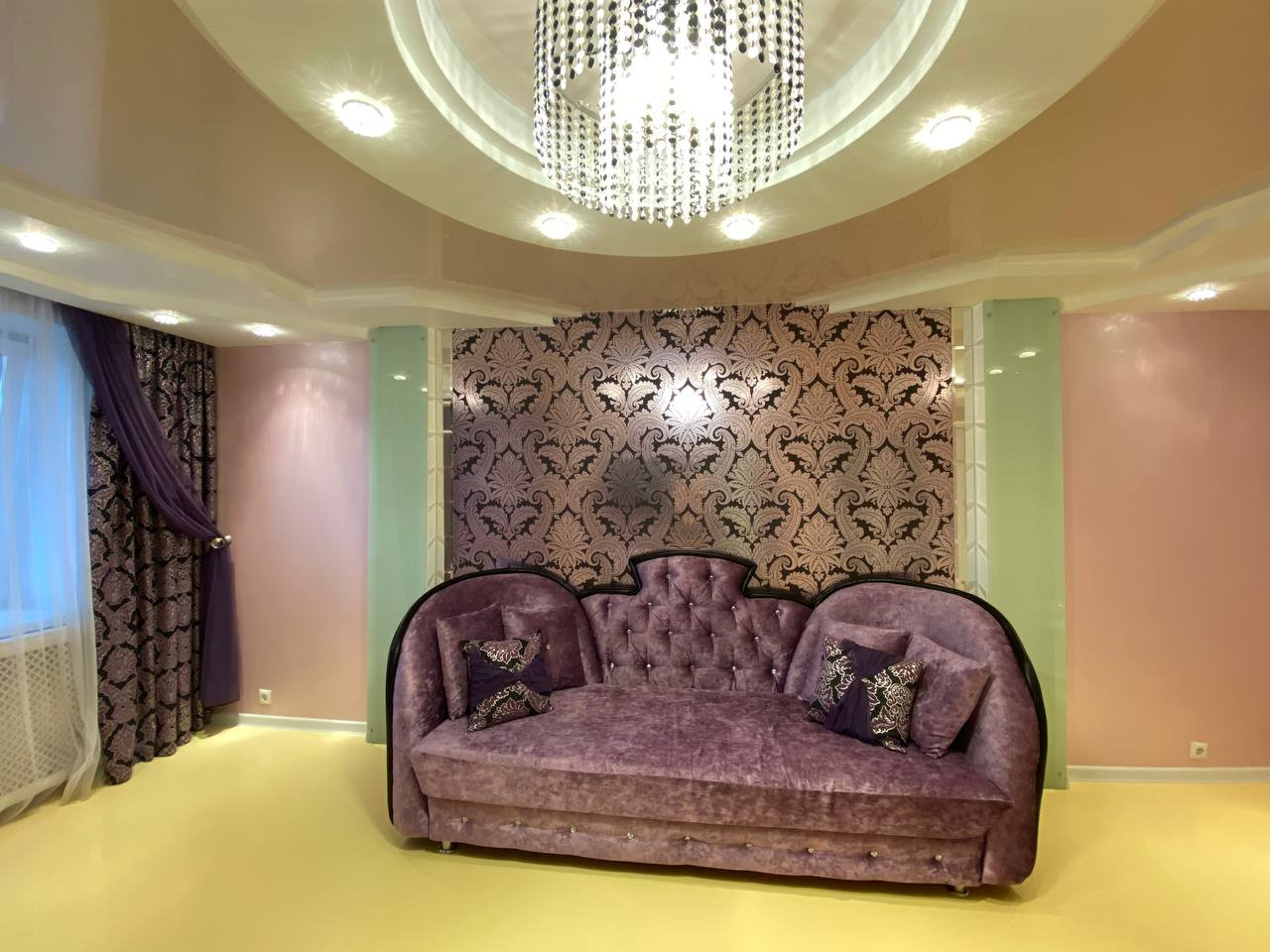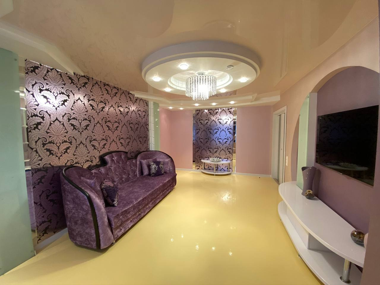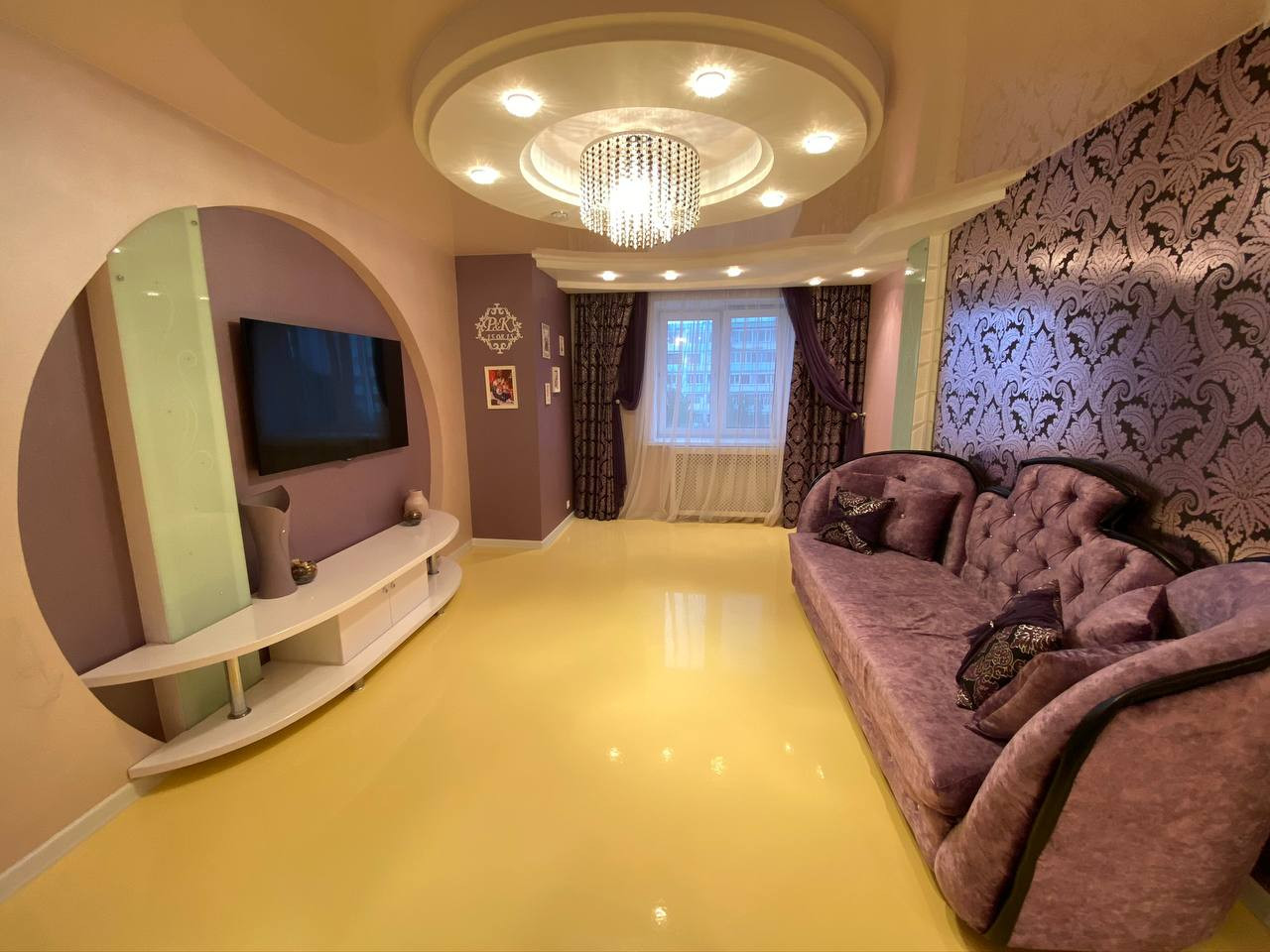 ✔️натяжные потолки, пластиковые окна, наливной 3Д пол в гостиной