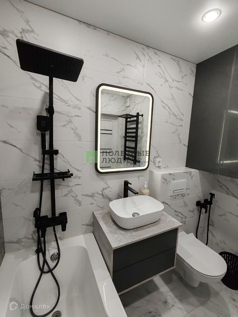 совмещенный санузел в кафеле,