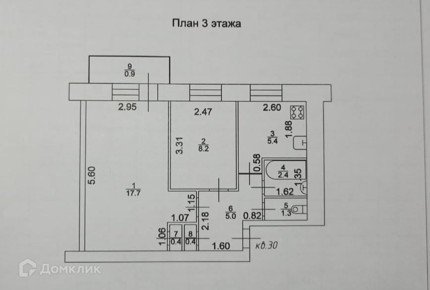 Общая площадь 41.7 м2