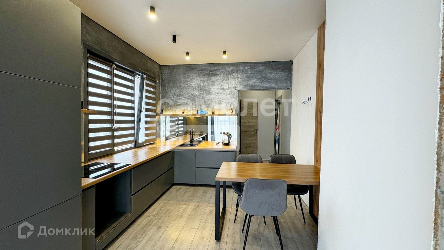 — стены выровнены, в зале декоративная штукатурка, деревянные рейки, стеновые панели, в прихожей и на кухне декоративная штукатурка,