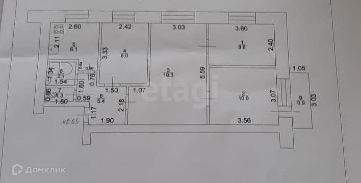 Общая площадь 62.5 м2