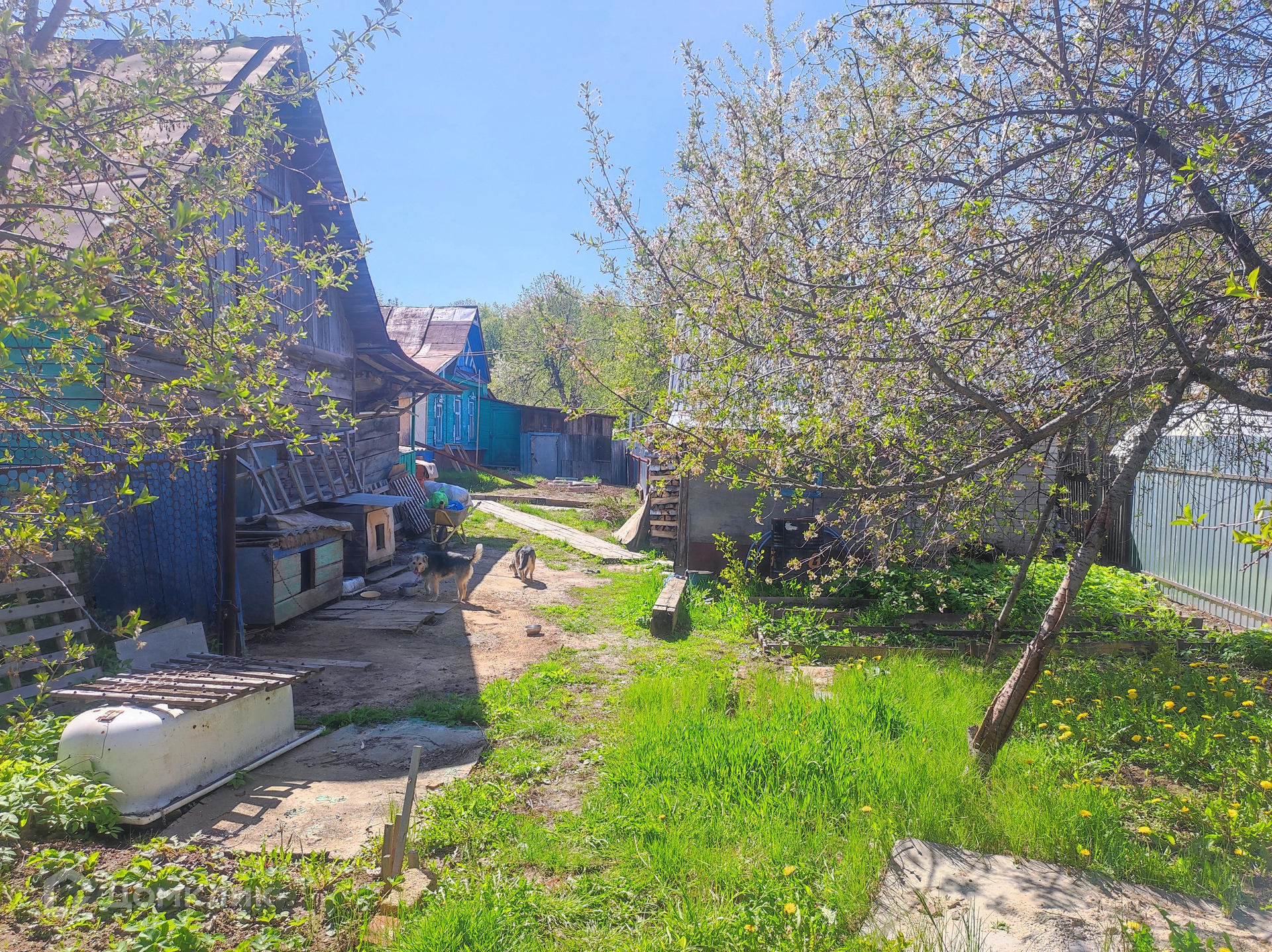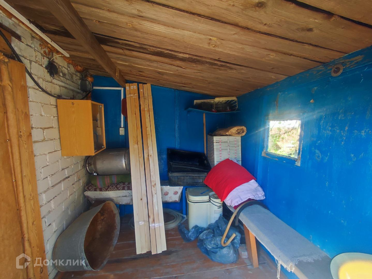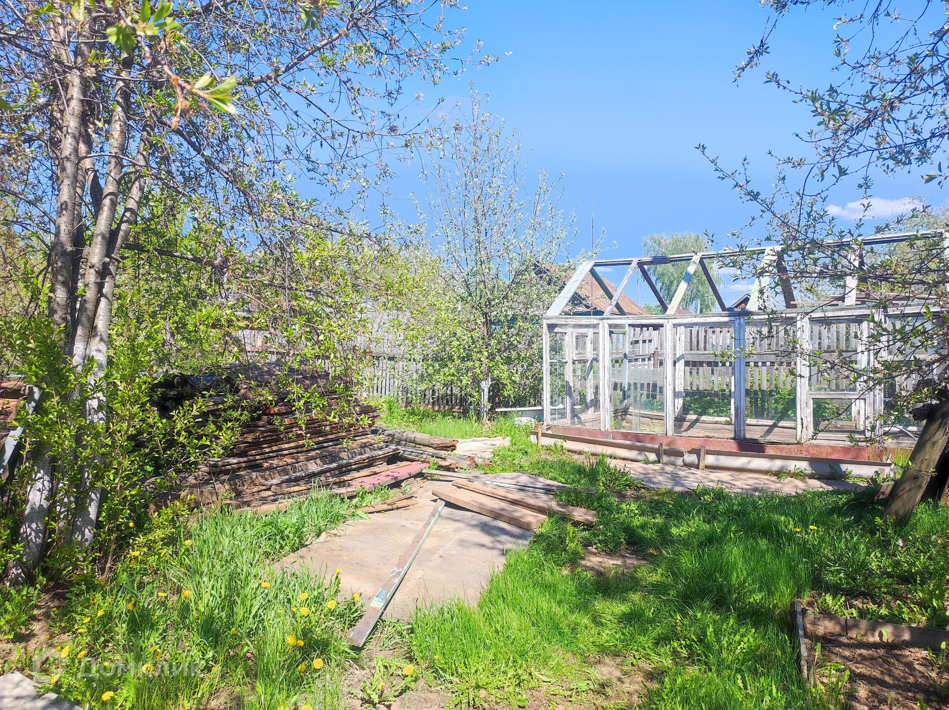 На участке есть кирпичная жаркая баня и сарай с погребом.