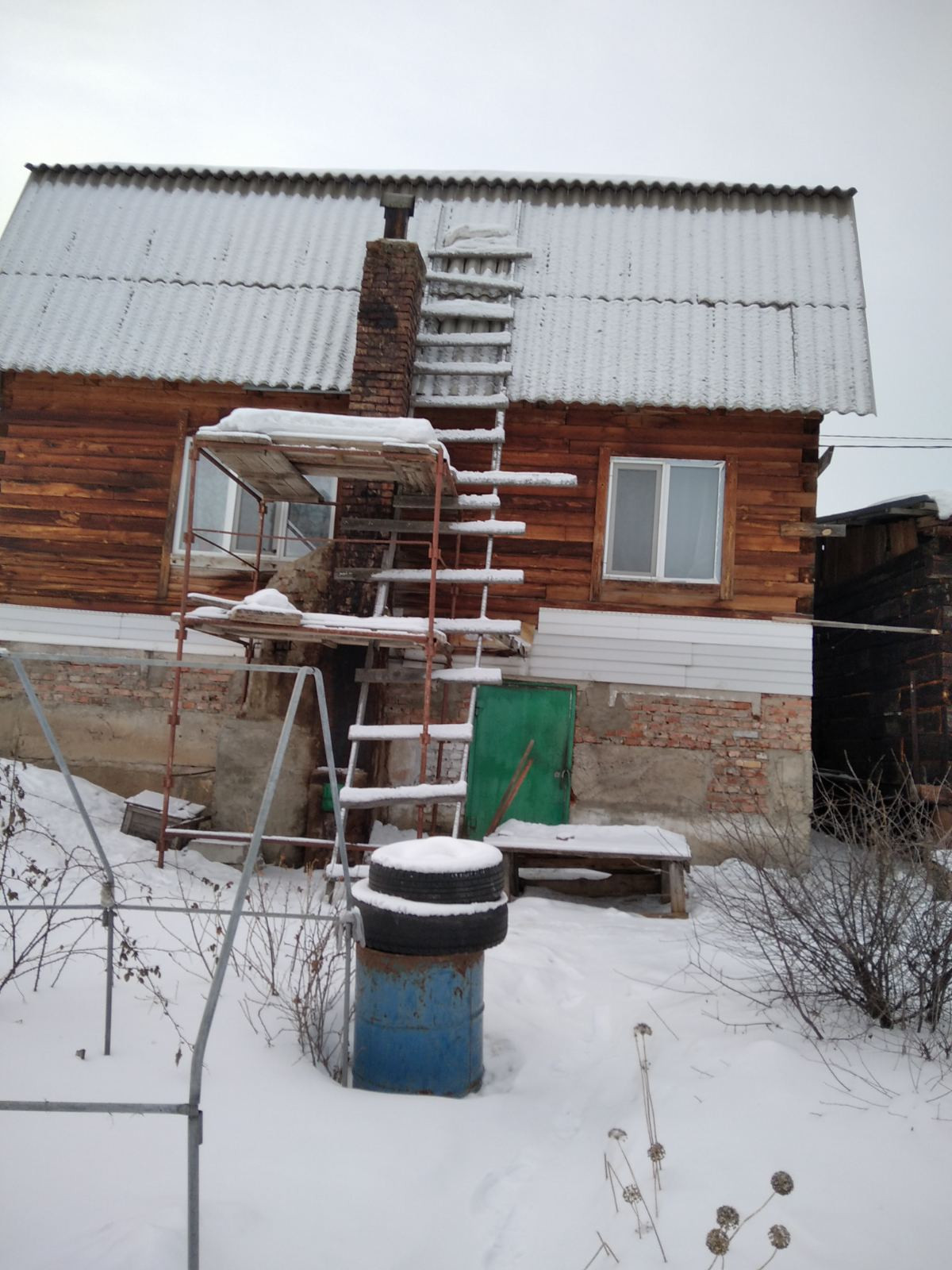 Первый этаж - брус, утеплен урсой и обшит сайдингом с двух сторон.