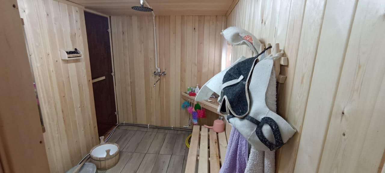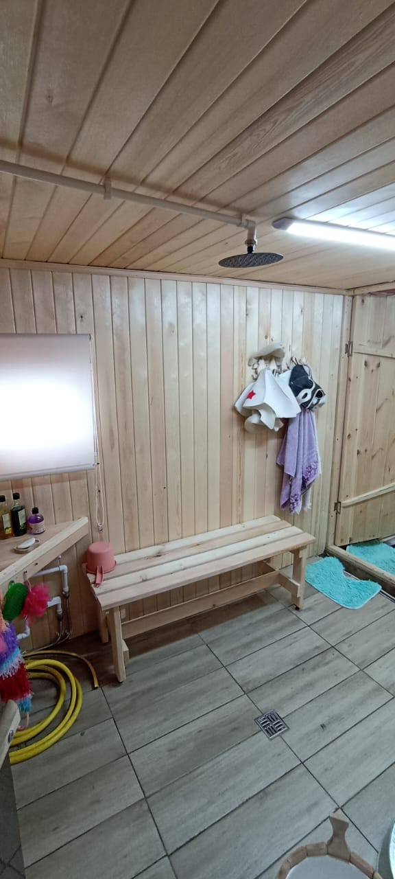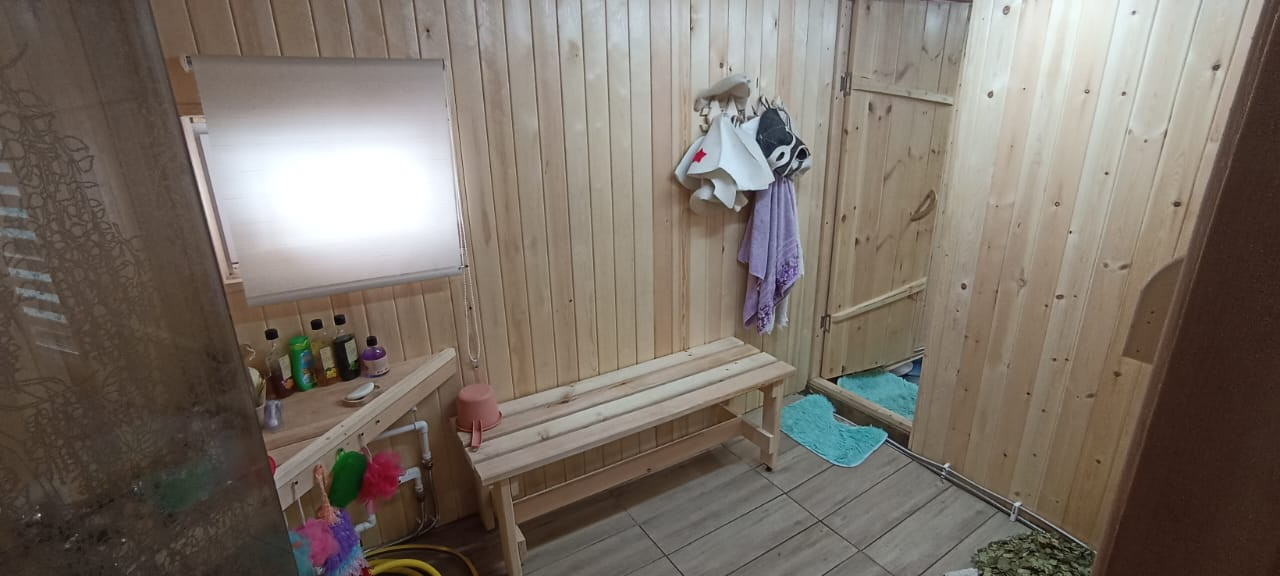 На земле Свеже-построенная баня 6*6.5м в бани теплый пол.. и всегда плюсовая температура, Слив в бане выведен в септик за забор!