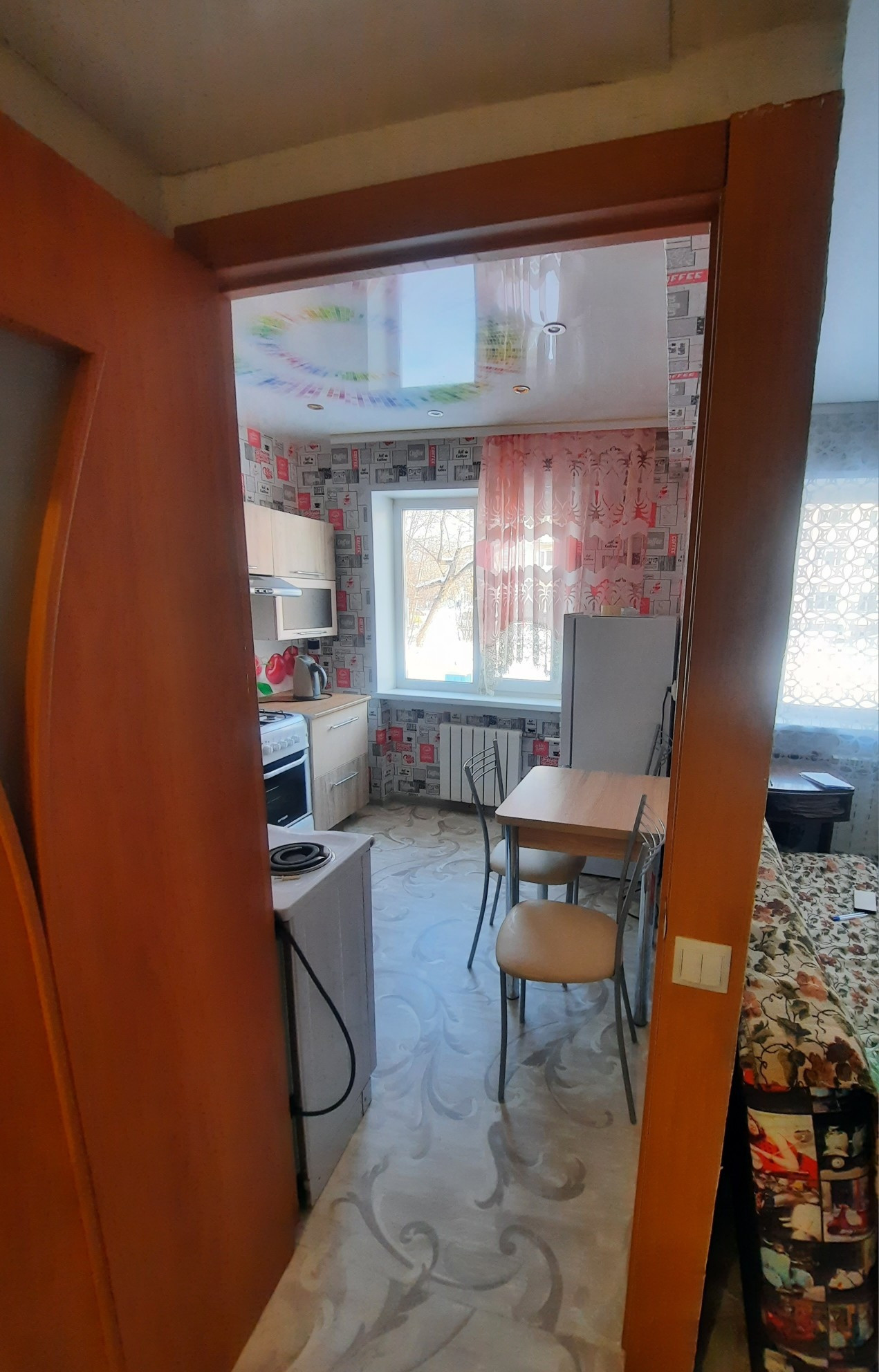 В КВАРТИРЕ СДЕЛАН КОСМЕТИЧЕСКИЙ РЕМОНТ: НАТЯЖНЫЕ ПОТОЛКИ, КРОМЕ КОРИДОРА И ВАННОЙ КОМНАТЫ - ПАНЕЛИ; СТЕНЫ ВАННОЙ КОМНАТЫ - ОТДЕЛКА КАФЕЛЬ; ОКНА ПВХ, НОВЫЕ МЕЖКОМНАТНЫЕ И ВХОДНАЯ ДВЕРИ; НА ПОЛУ ПОСТЕЛЕН ЛИНОЛЕУМ.