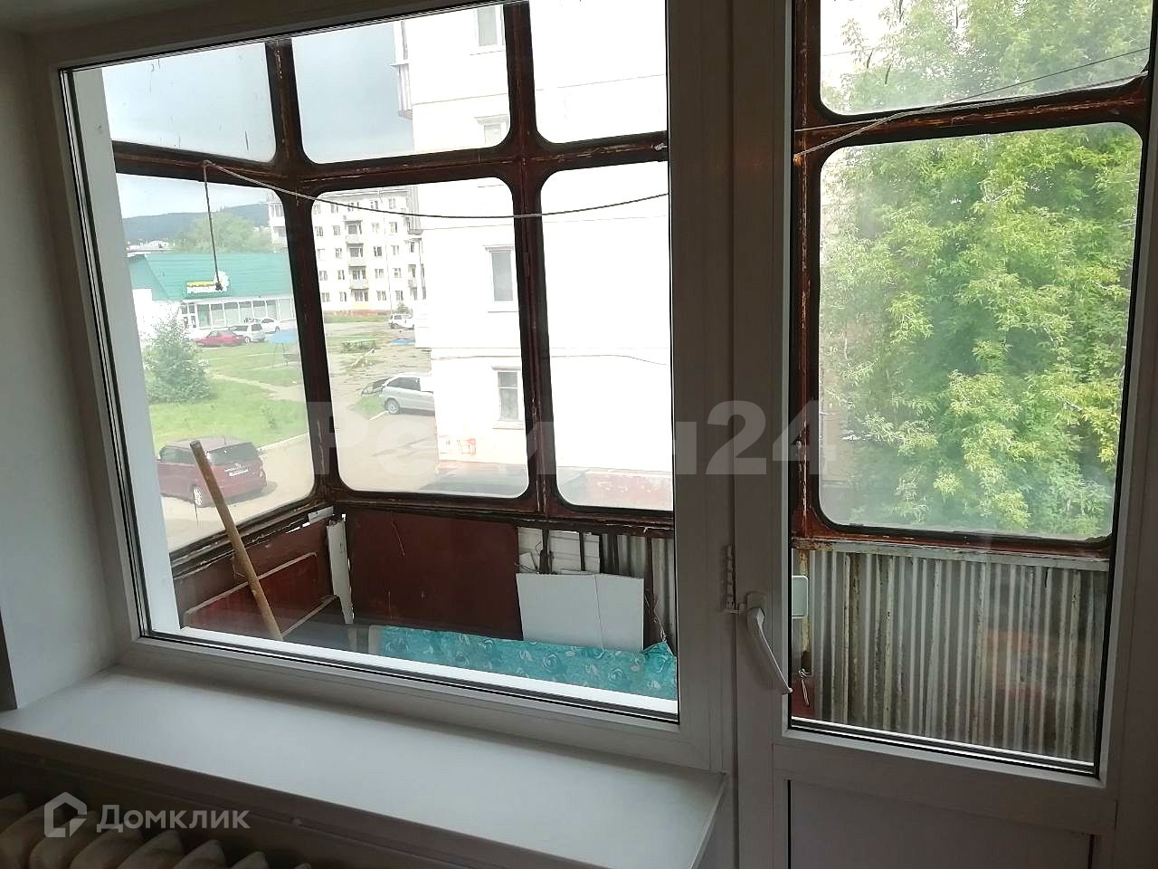 » Балкон застеклён металлическими рамами.