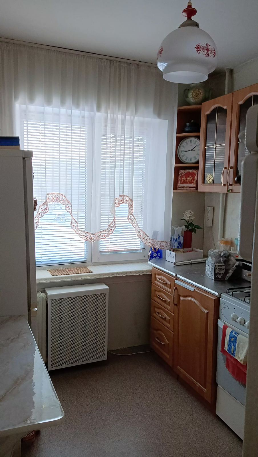 Квартира не угловая . Центр города , парк, школы, садики, магазины все в шаговой доступности . В квартире остаётся стенка и кухонный гарнитур.