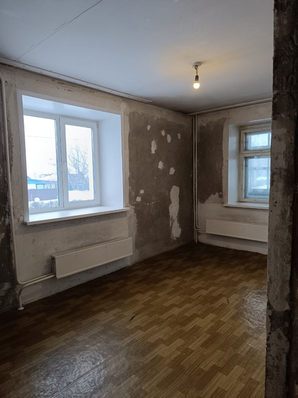 Два окна заменены на пластиковые, два под замену.