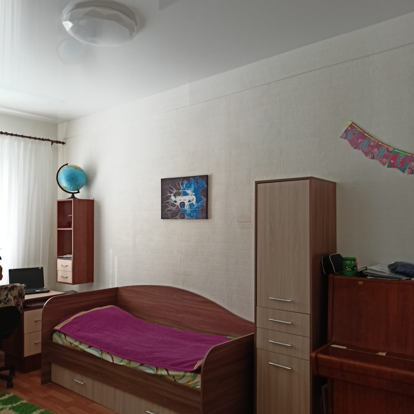 Окна ПВХ, в комнатах натяжные потолки.