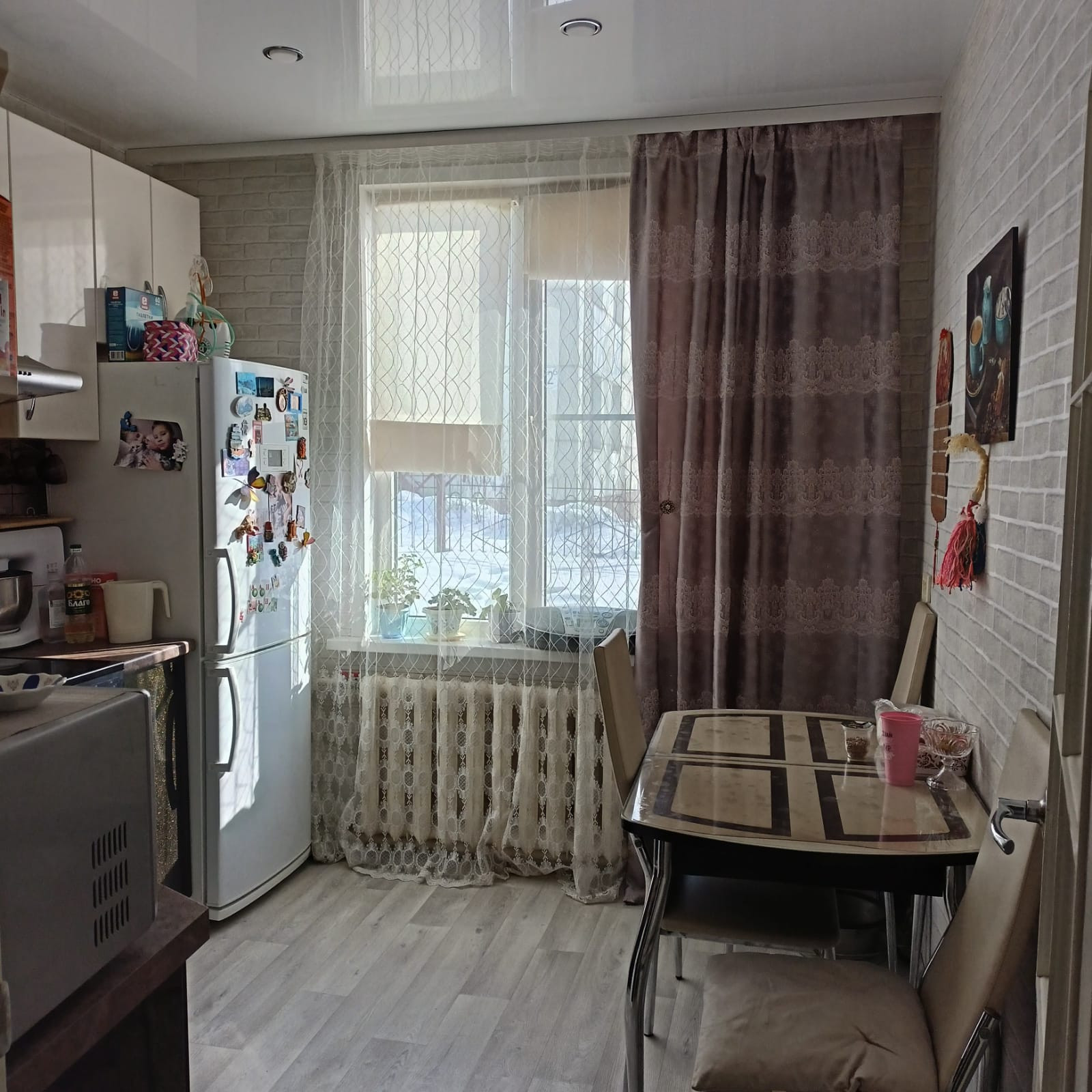 Квартира очень теплая и светлая с высокими потолками.