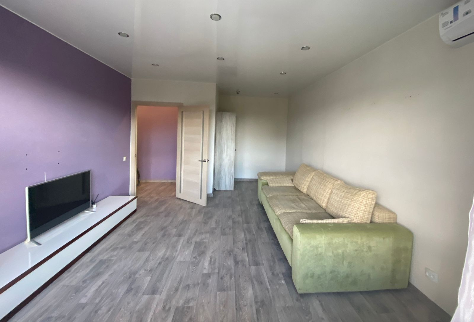 - натяжной потолок с точечными светильниками, по всей квартире,