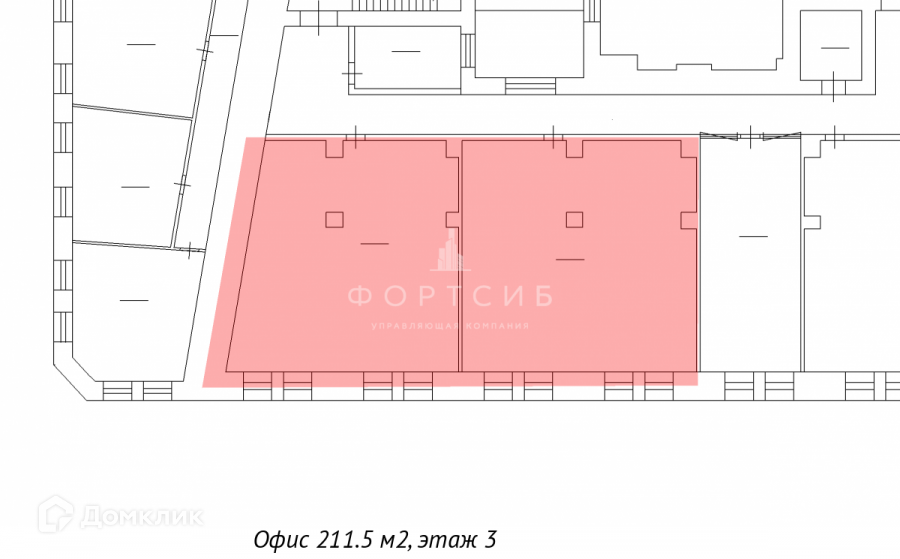 Общая площадь помещений составляет 211.5 кв. м.