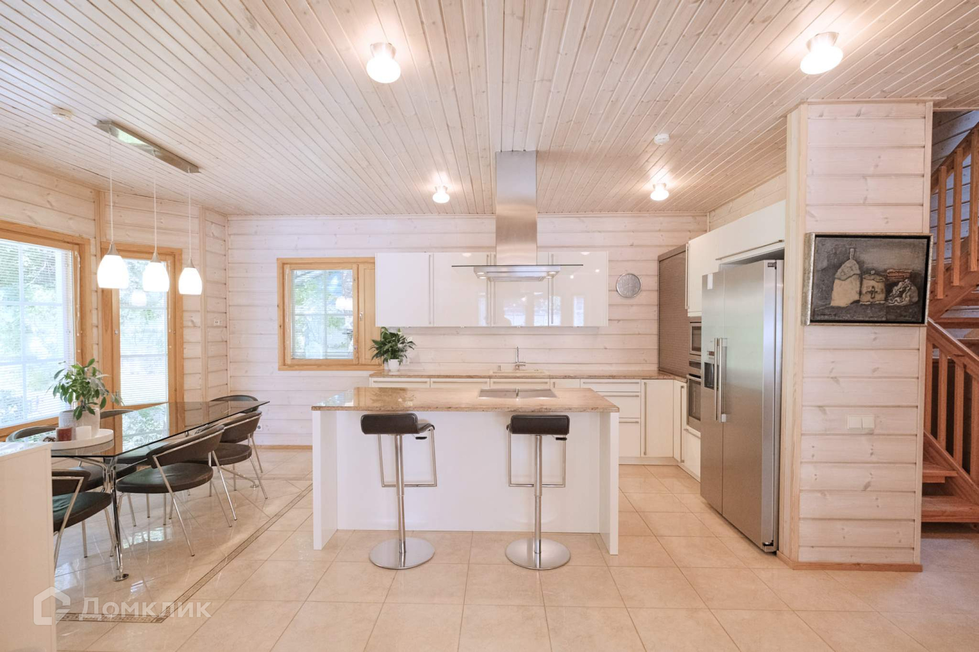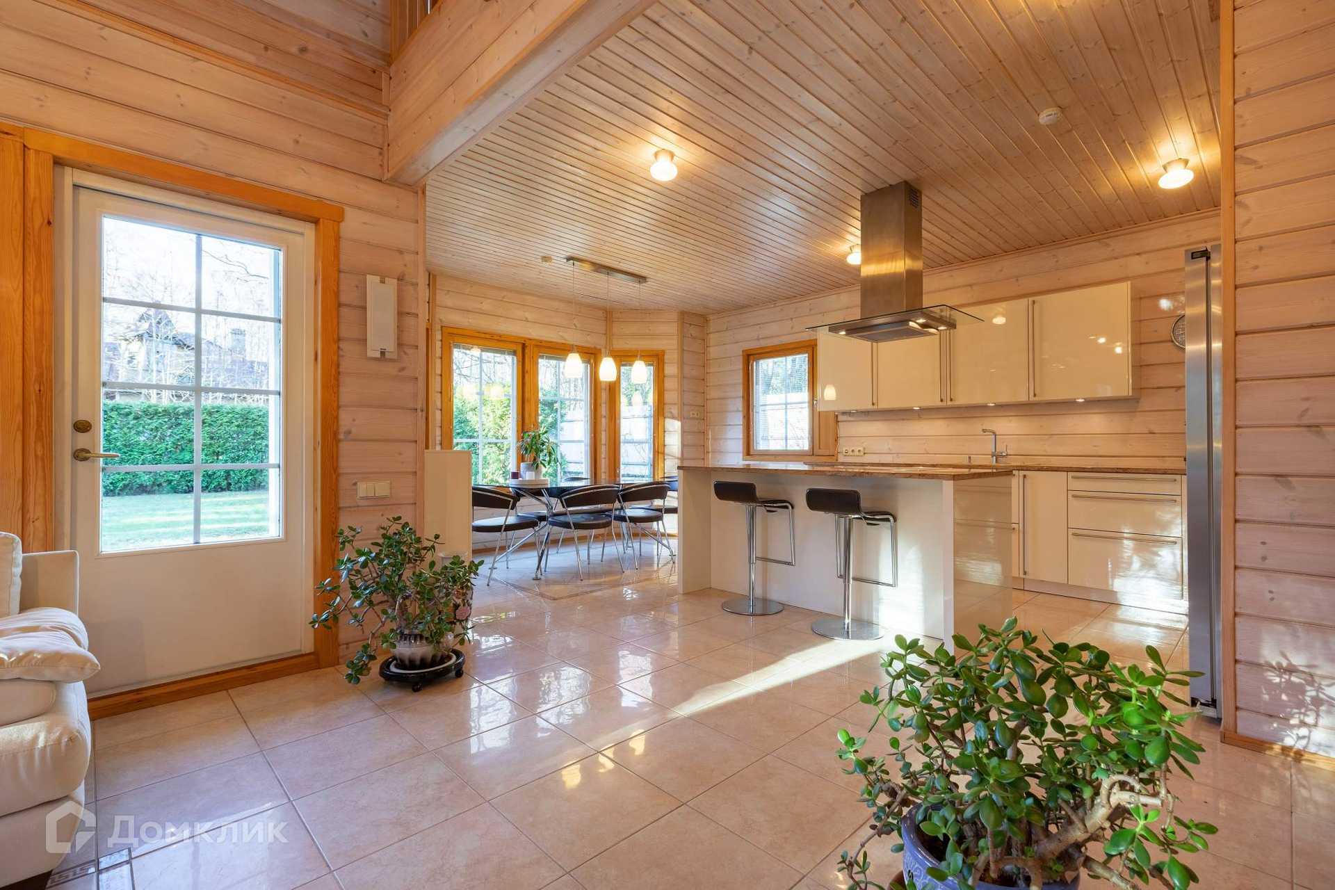 Дом построен из экологически безопасных для здоровья материалов: дерево и натуральный камень.