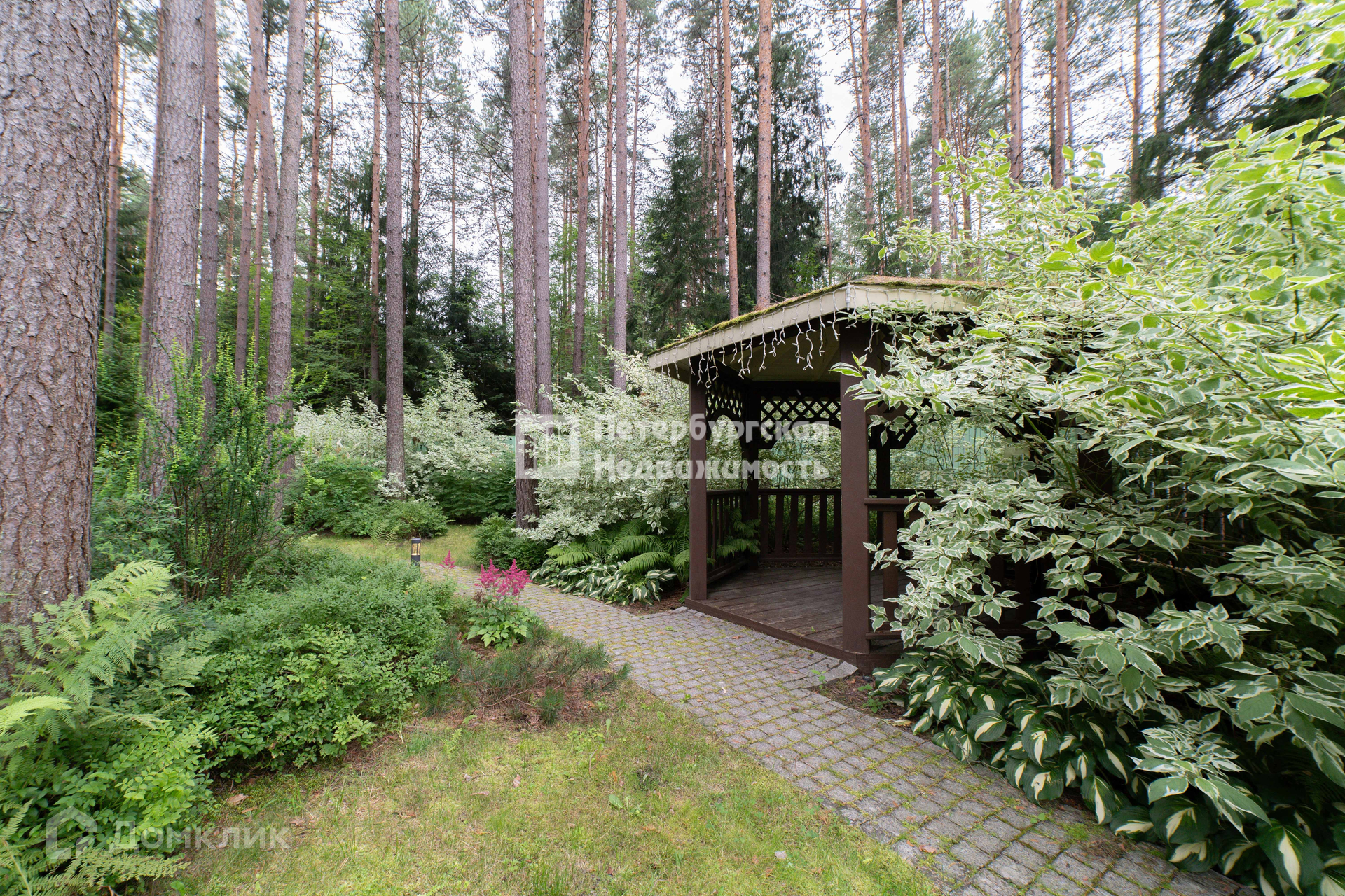 Дом расположен на участке 19.4 сот., в окружении вековых сосен, территория очень ухоженная, по всему периметру освещение, установлена беседка, детская площадка , вымощенные дорожки, растут плодовые деревья.