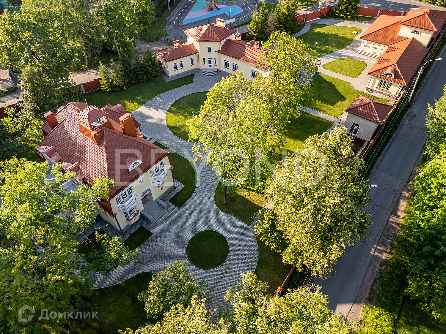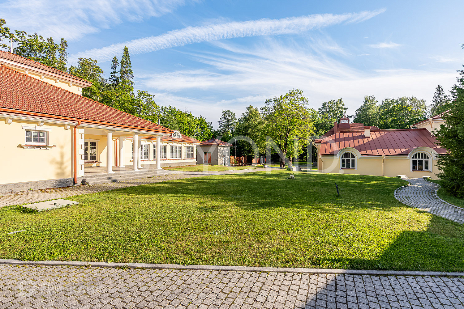 На сегодняшний день усадьба представляет собой комплекс, состоящий из особняка, служебного флигеля, оранжереи, банного комплекса, фруктового сада и естественного парка с многолетними деревьями. Ансамбль расположен на 1,15 Га земли и находится в 800 метрах от пляжа на Финском заливе.