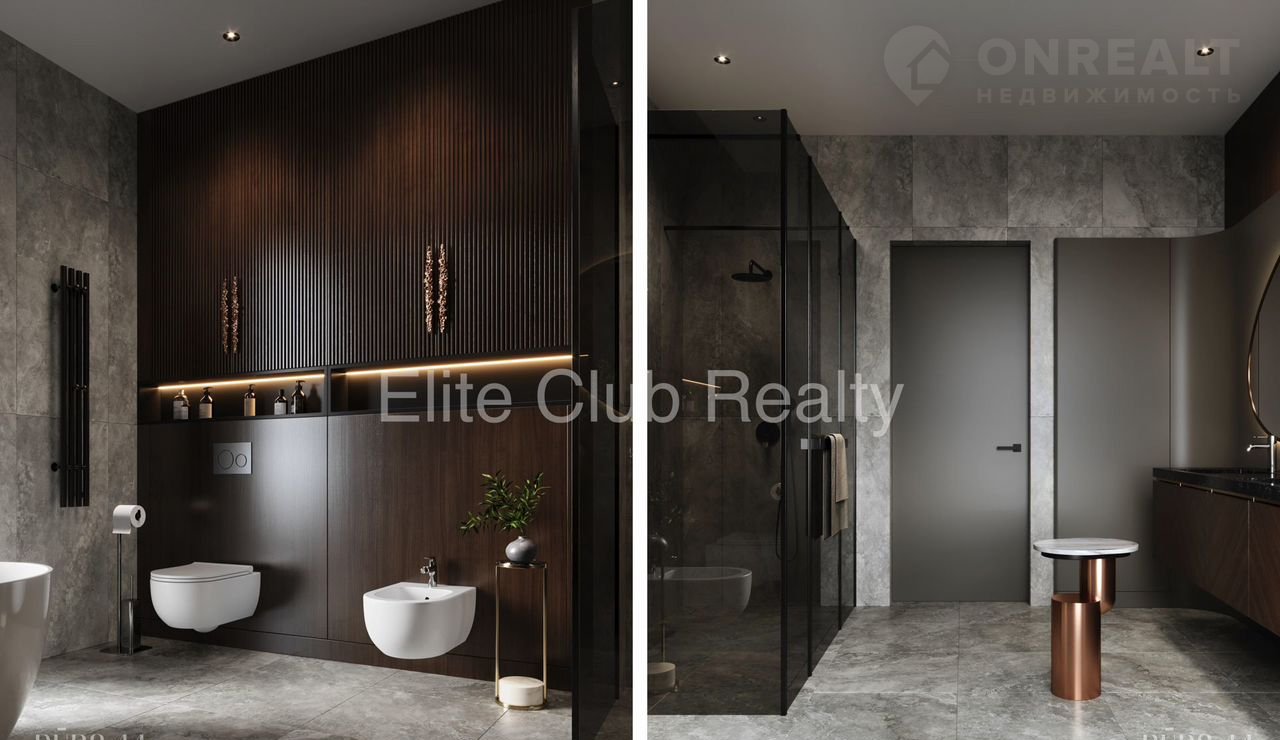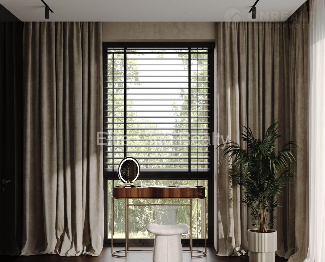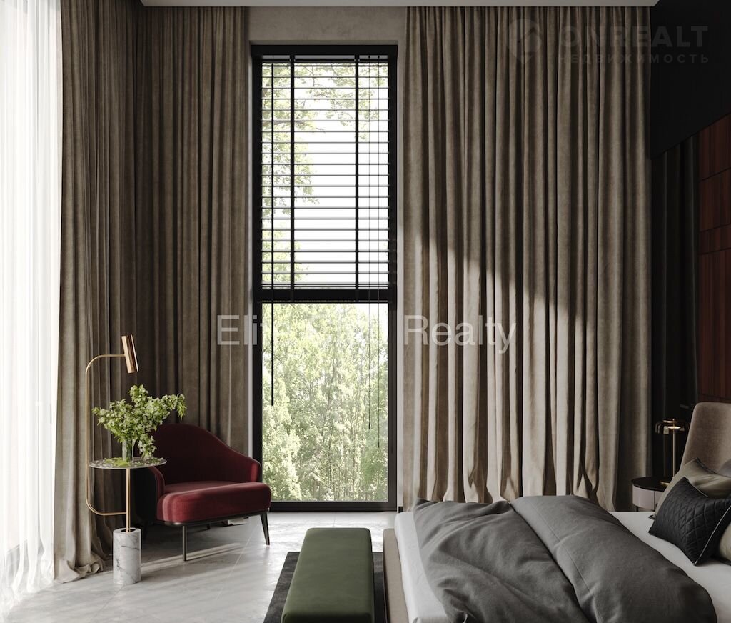 * 2 этаж: холл–лаунж, главная спальня (с ванной и гардеробом), 3 гостевых спальни (одна с террасой), функциональный и элегантный дизайн в нейтральных тонах.