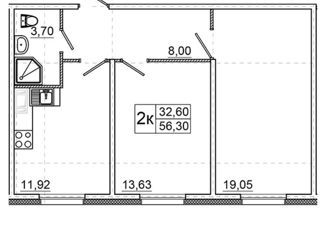 Общая площадь: 56.3 м2