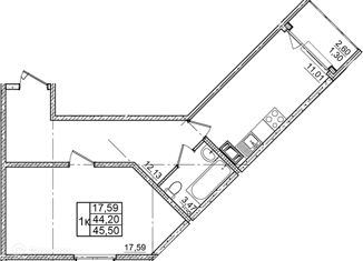 1-ком. квартира на продажу, 42.4 м2, улица Строителей, 3к2