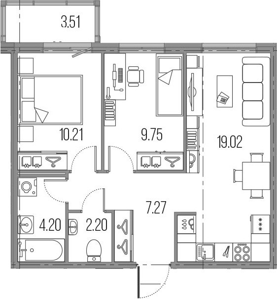 Площадь кухни 19.02 м2