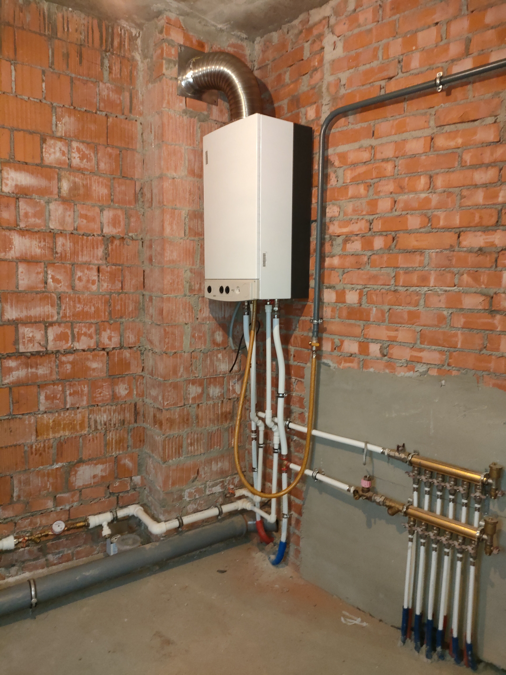 -установлен газовый термоблок, газовый котел двухконтурный