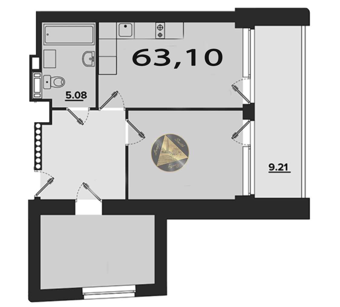- Общая площадь квартиры 63,10 м2.