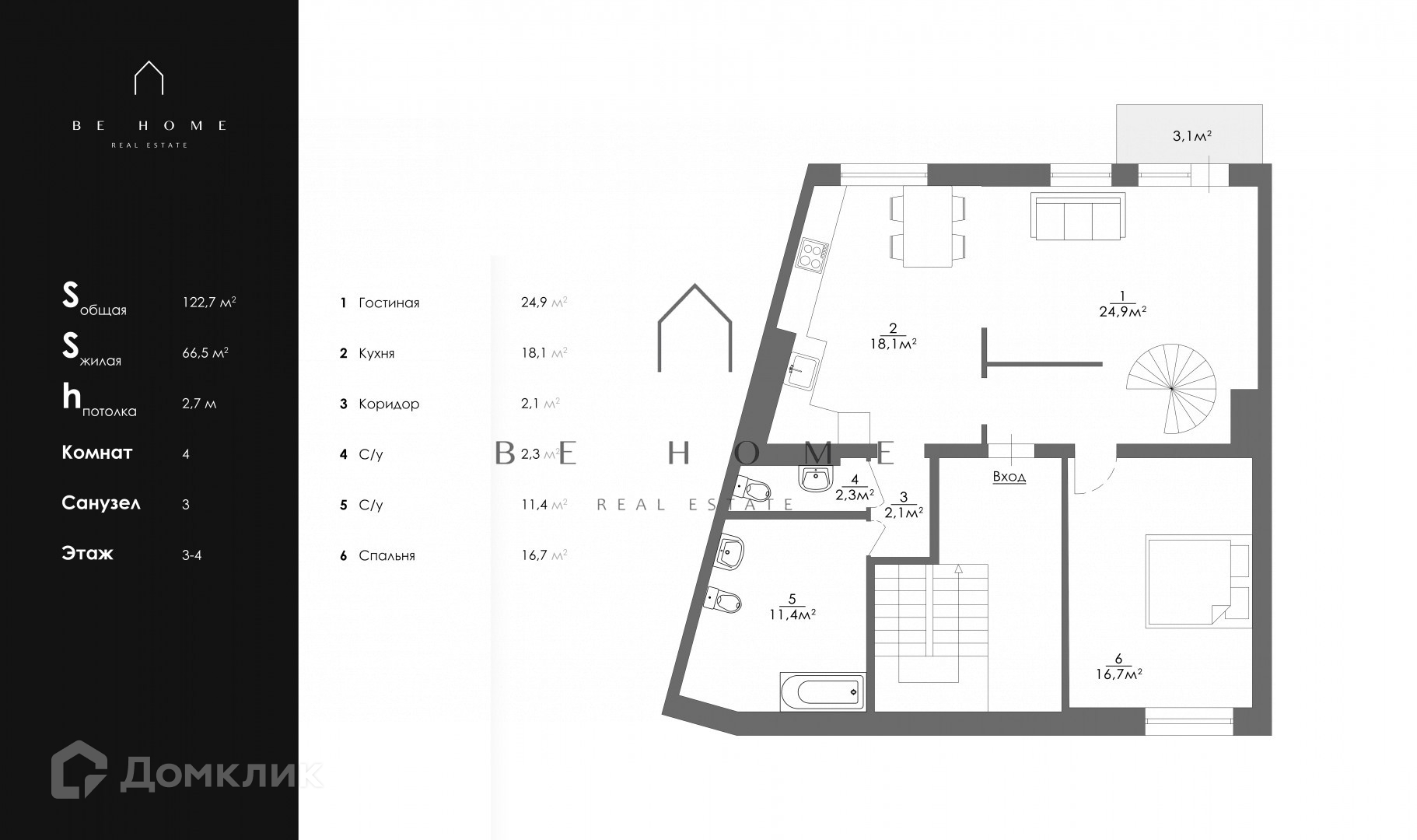 Общая площадь 122.7 м2