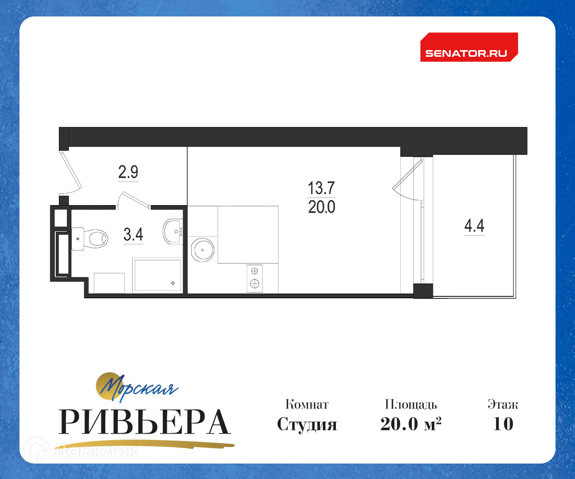 Квартира студия, 24.4 м2, этаж 10 / 12, на продажу в Зеленогорске, Приморское шоссе, 570Л
