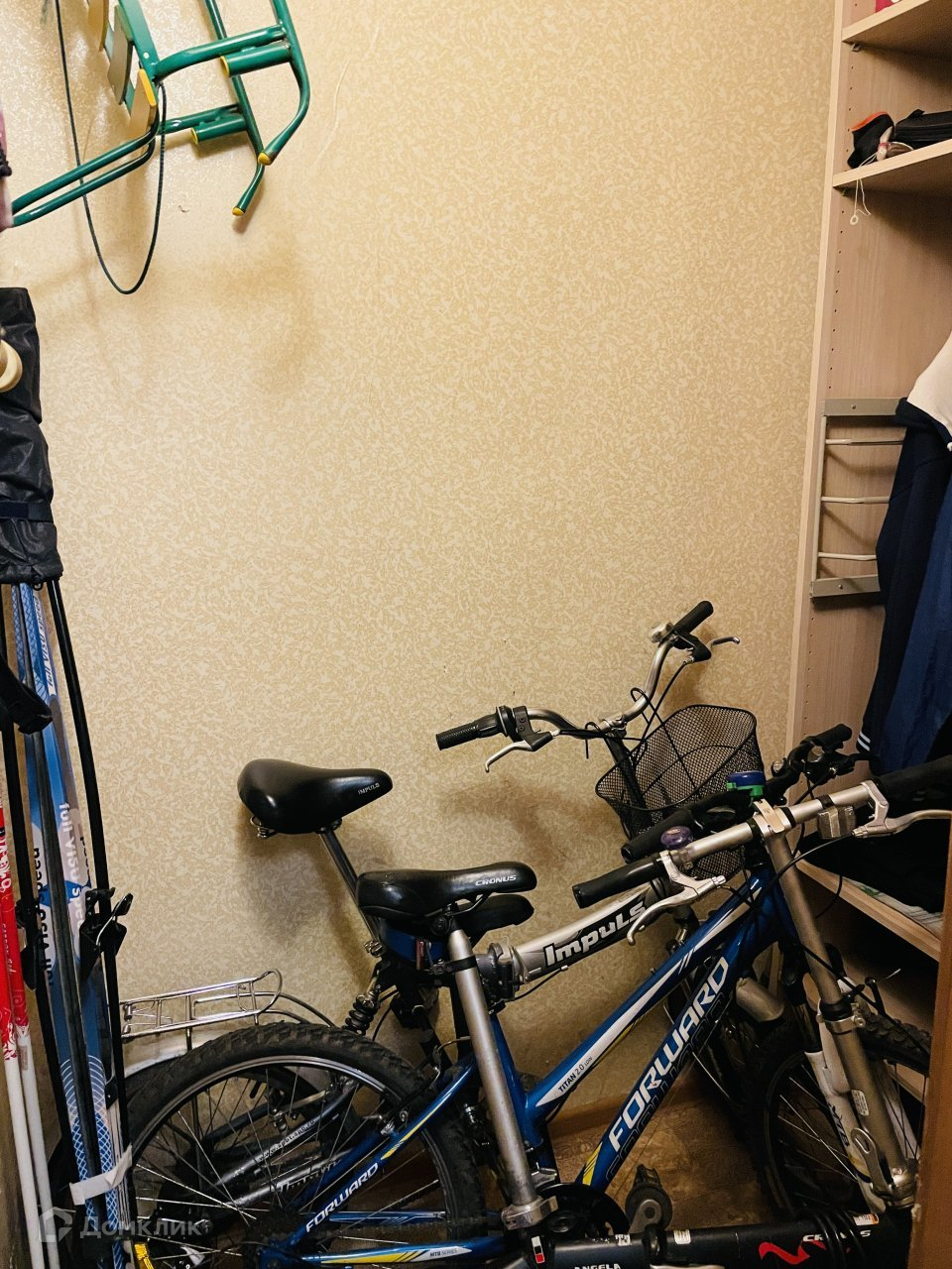Есть просторная кладовая/гардеробная, в которой без труда поместится шкаф для одежды и спортинвентарь.