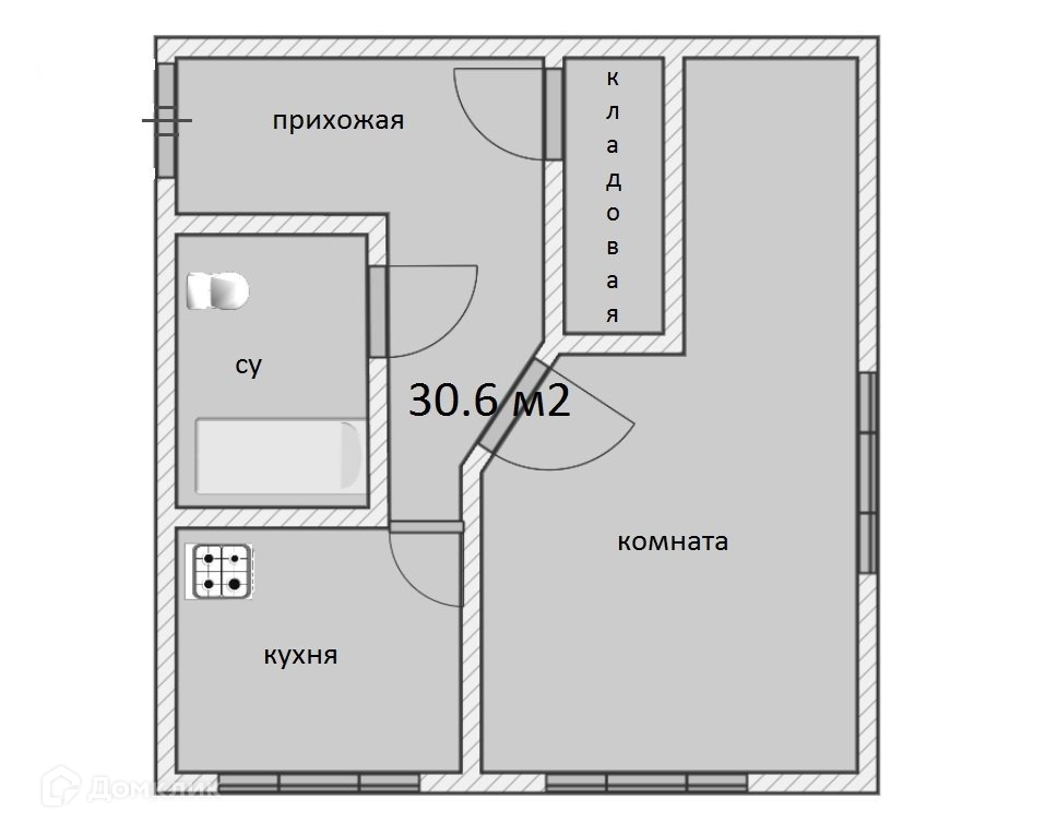 Общая площадь 30.6 м2